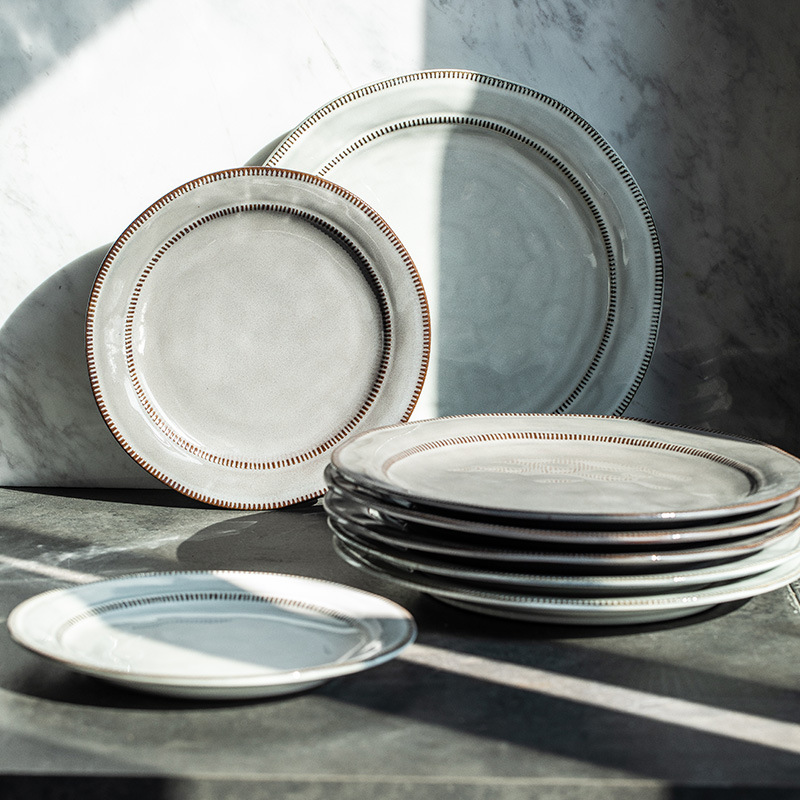 Product Information:Material: PorcelainPattern: plainShape: IrregularColor: Hidden-gray small plate 21cm, hidden-gray large plate 28cm, hidden-off-white small plate 21cm, hidden-off-white large plate 28cmPacking List:Ceramic plate x1