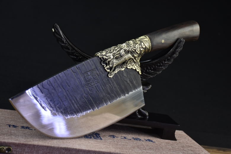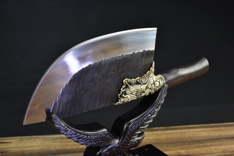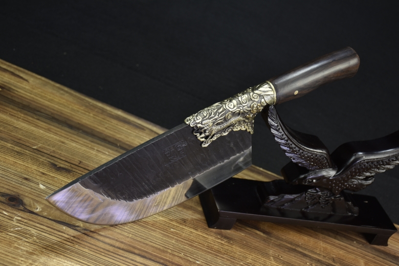 Full length: 37cm Blade length: 22cmHandle length: 13cm Blade width: 11.8cmThickness: 0.5cm Blade material: high-speed steelHandle material: ebony wood fittings: pure copper