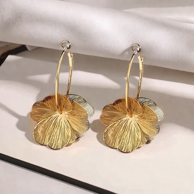 Color: E-415-Golden hollow flower earrings, E-1231-Silver hollow flower earrings, gold four petal flower earrings, silver four petal flower