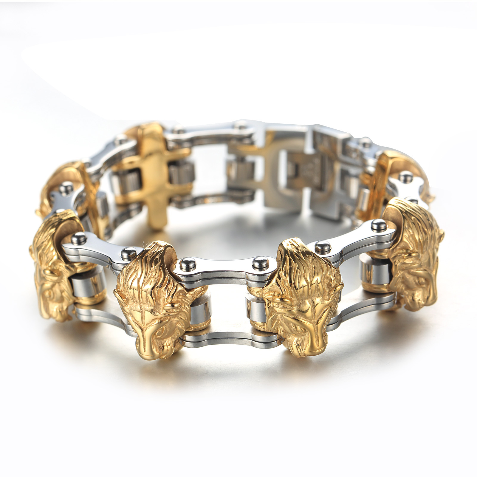 〖Baby Name〗: Fashionable thick chain men's lion head titanium steel bicycle bracelet〖Baby Material〗: Titanium steel (316), never fade.Styling: Animals / ZodiacPackaging: Individually packed