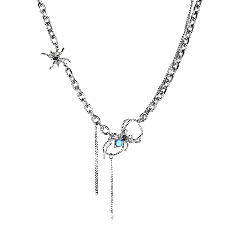 Product information:Color: Spider fringe chain necklacePendant material: alloyStyle: Women'sChain style: Box chainMaterial: titanium steelShape: Animal/zodiacPopular elements: irregularity, asymmetryStyle: Sweet cool