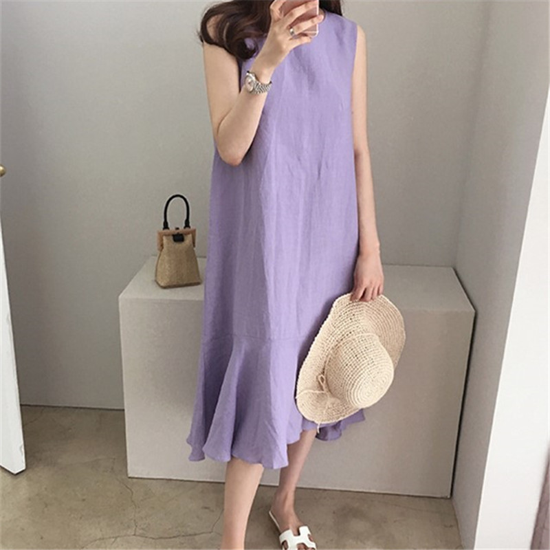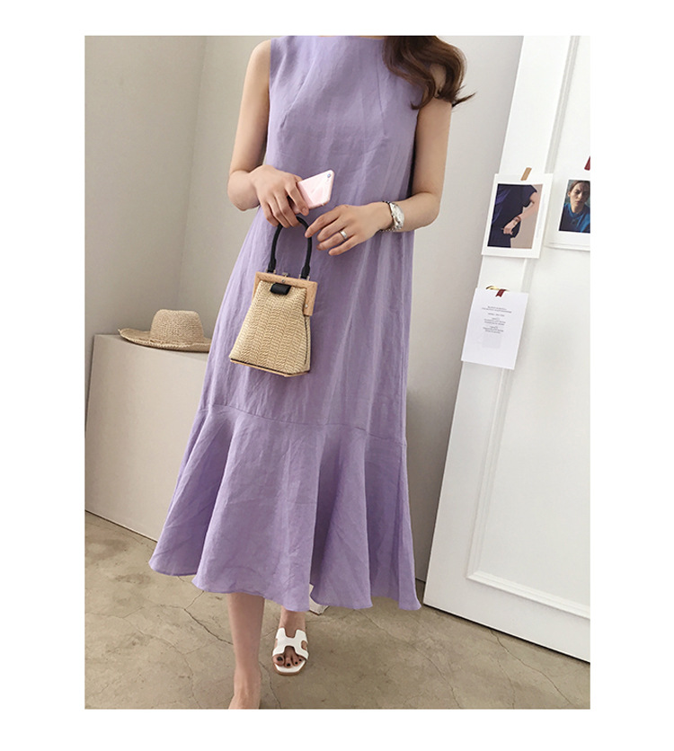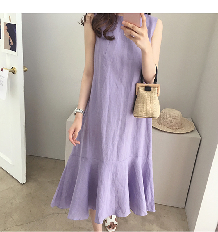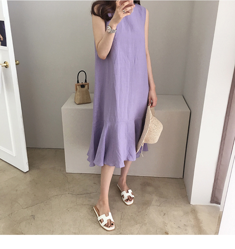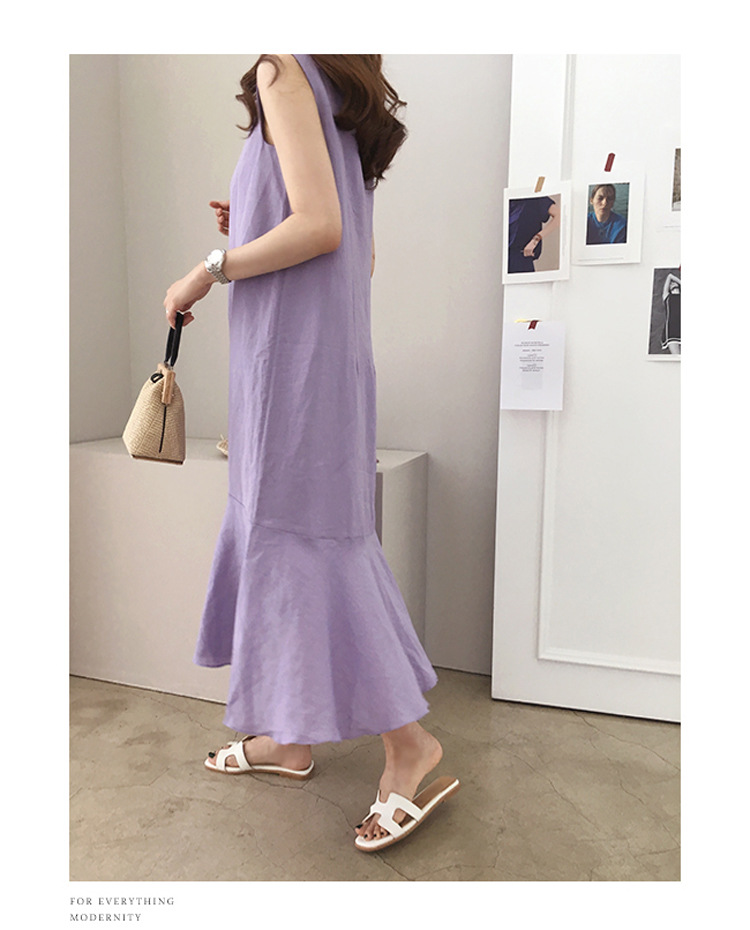 Taro Purple Linen Dress Casual Sleeveless Loose Slimming Fishtail