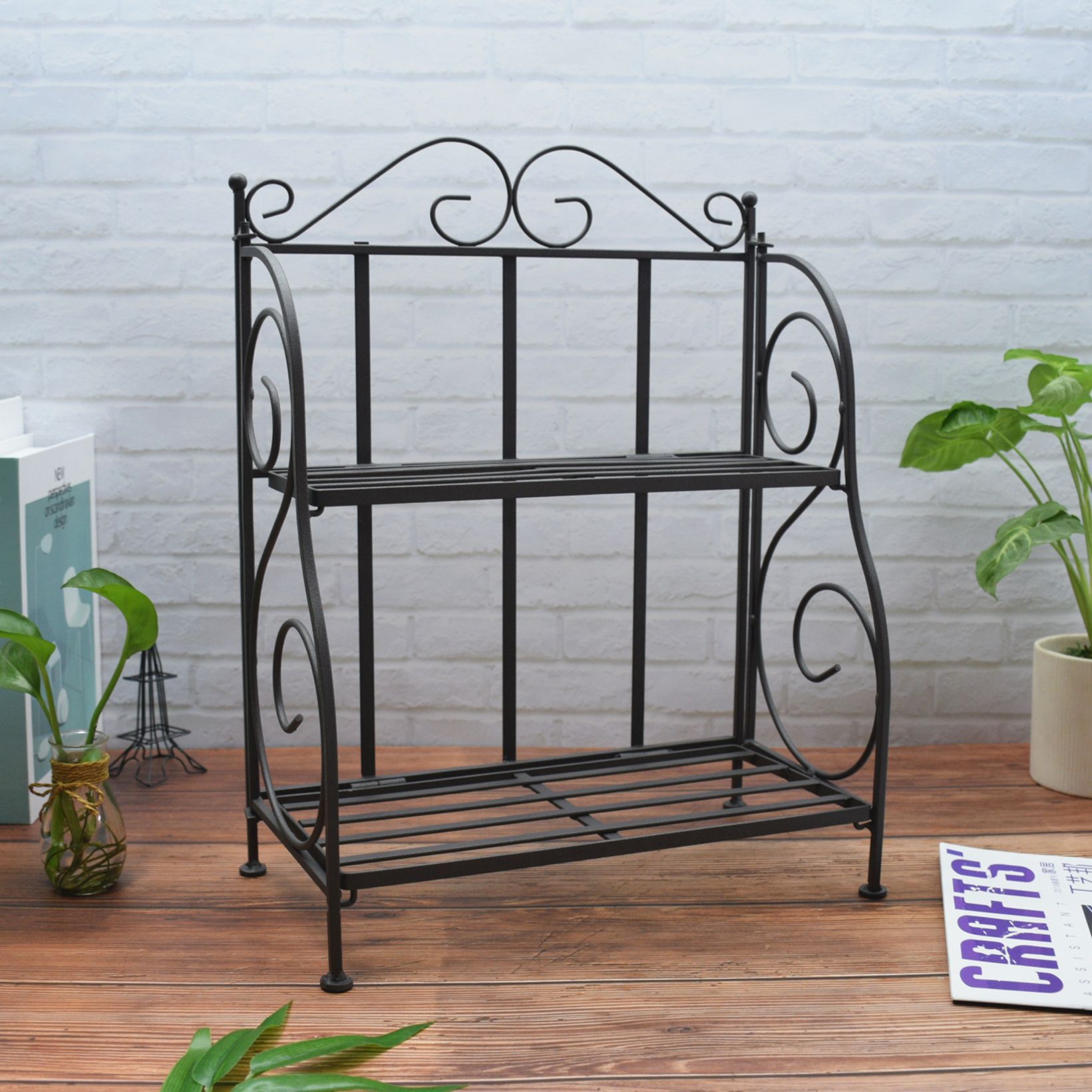 Product information:Color: sand pattern Black Number of layers: 2 Function: multi-purpose, detachable Material: Iron Style: European style Style: multifunctional double layered storage rack