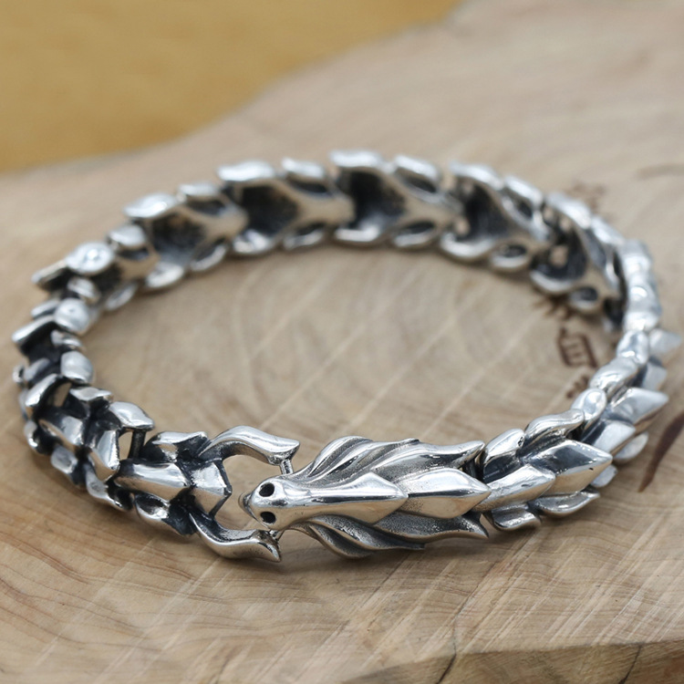 Product information:Style: RetroMaterial: silverTreatment process: curing and blackeningType: BraceletStyle: men's styleModeling: Animal/ZodiacPacking: in bulkPacking list:Bracelet*1