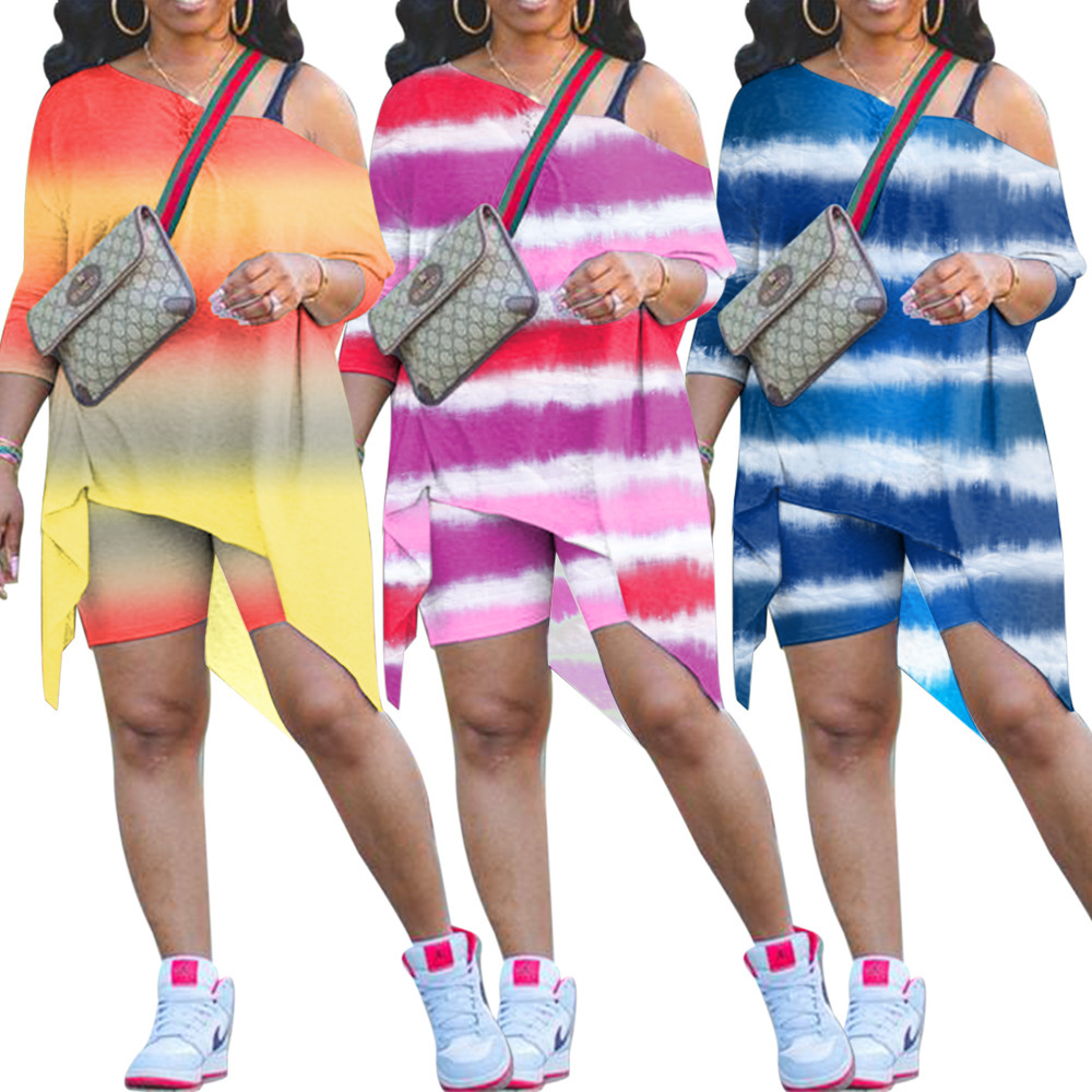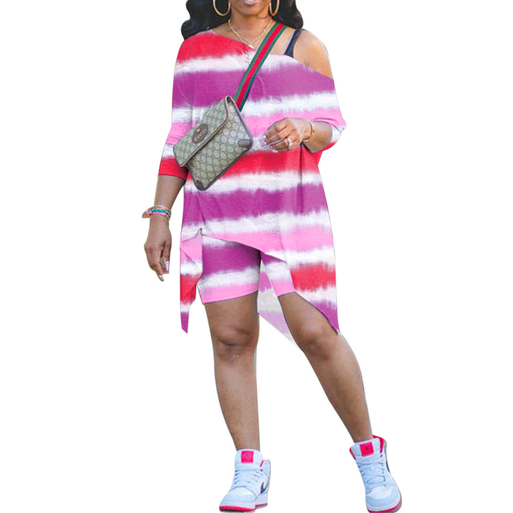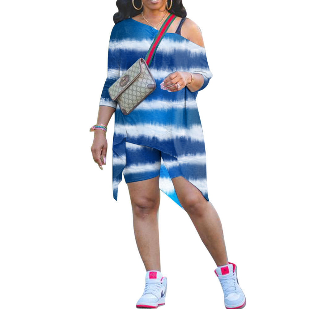 Popular element: fashion oblique shoulder irregular print in trousers two pieces of night club clothing