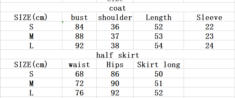 Color: white [shirt + half skirt]