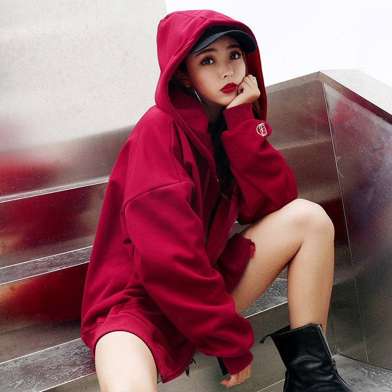 autumn and winter new cardigan long-sleeved sweater female Korean version plus velvet loose thick hooded long autumn coat
