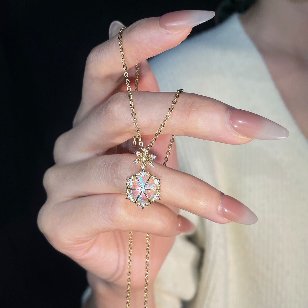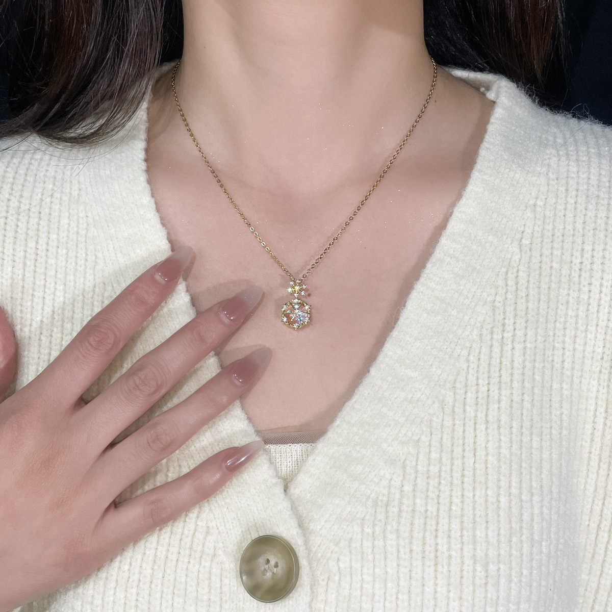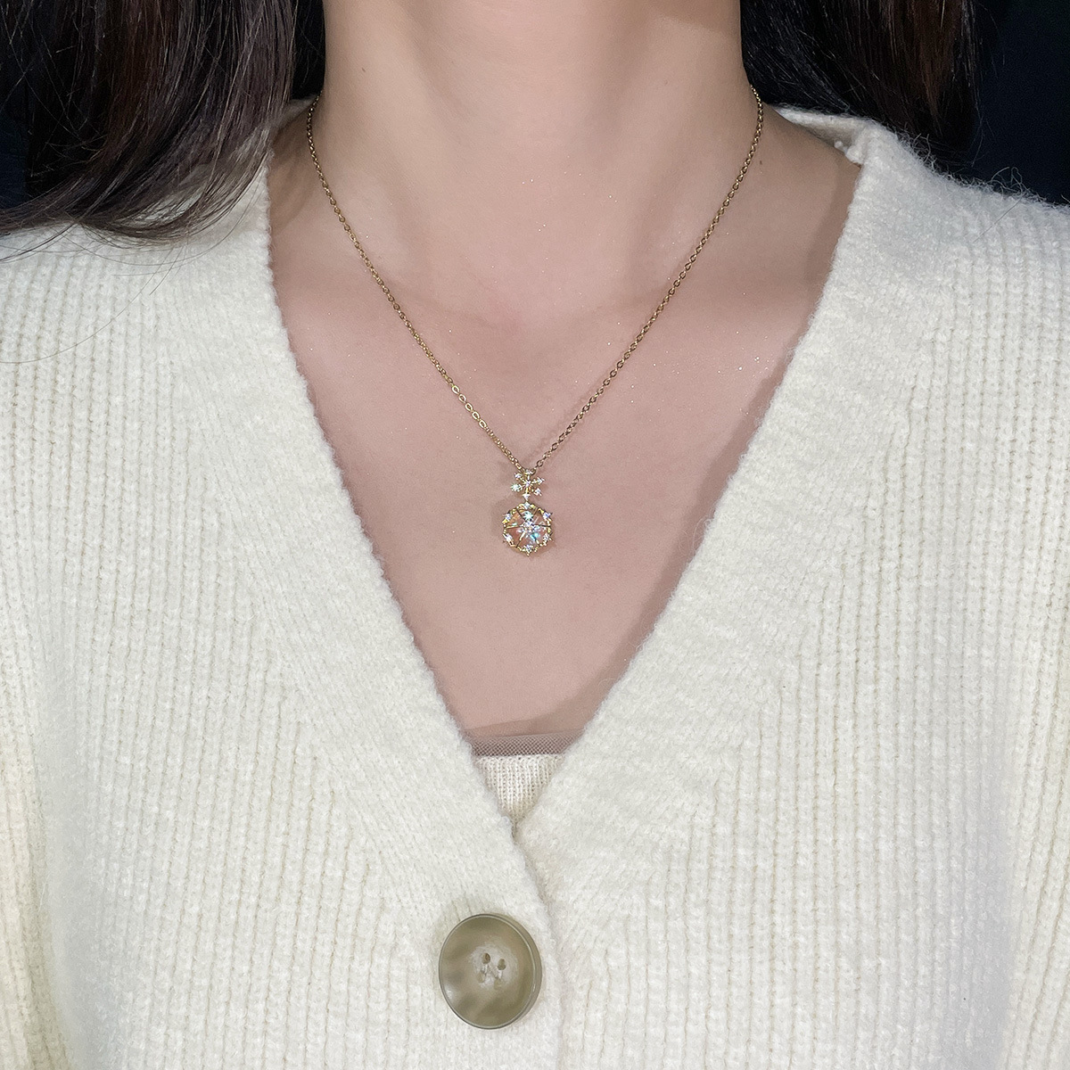 Color: X5436# glass snowflake necklace-gold, X5437# glass snowflake necklace-Silver