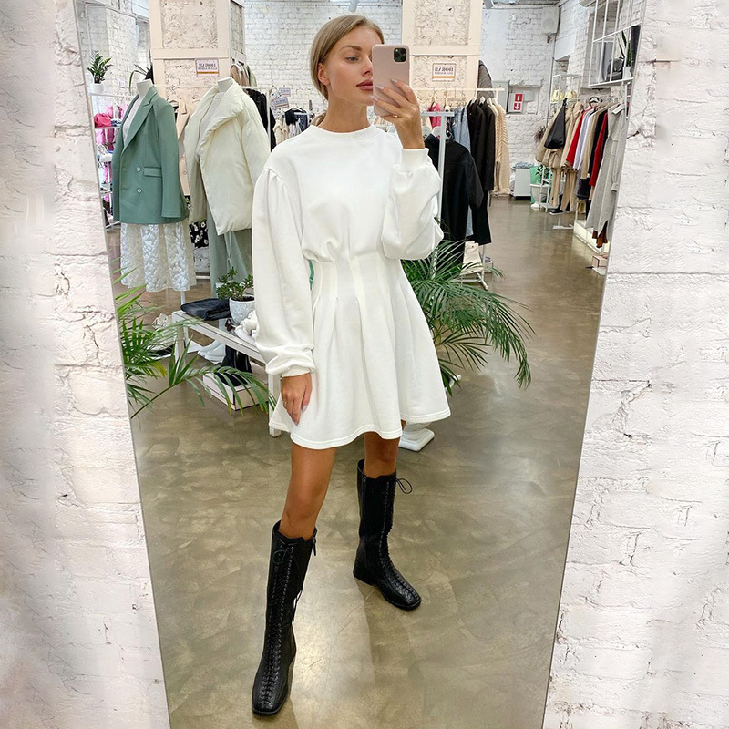 Dark Girl College Dress Pleated Waist Guard Dress