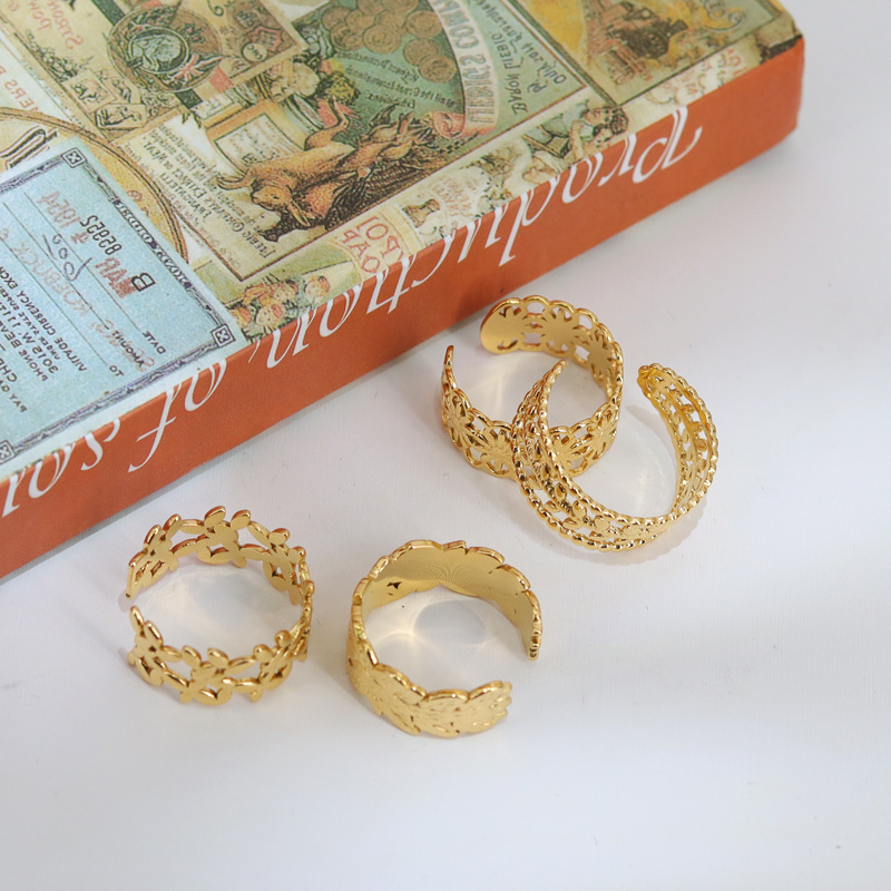 Leaf opening ring face width: approximately 0.92 centimeters, weight: approximately 3.6 grams