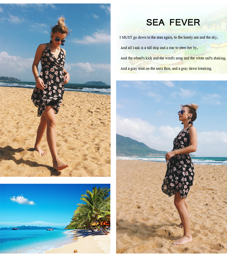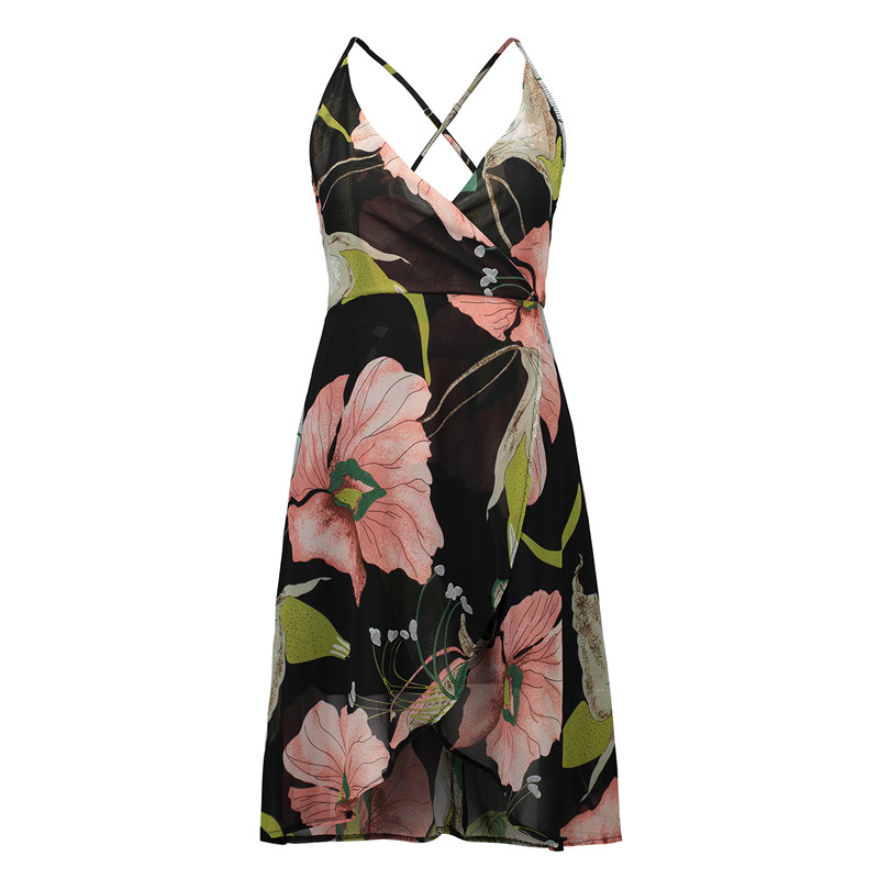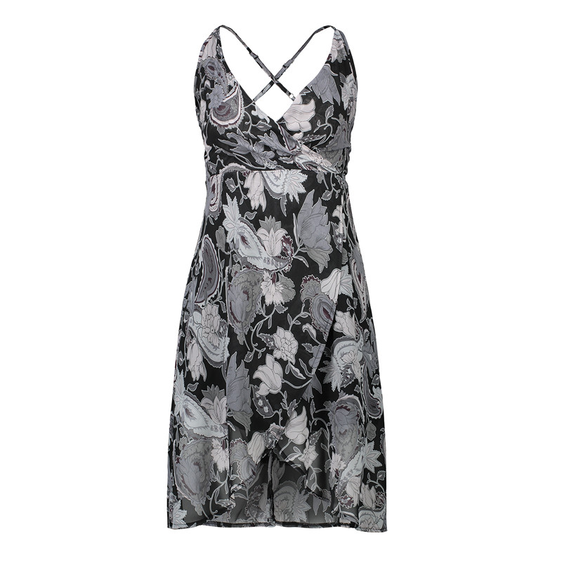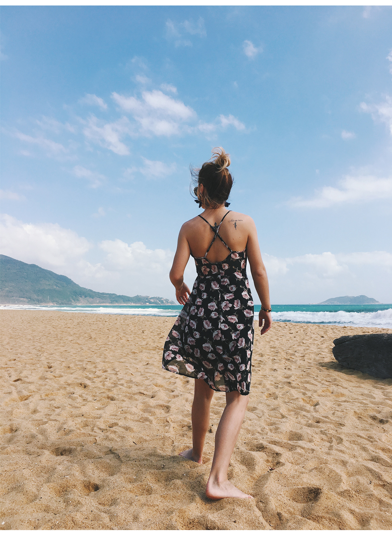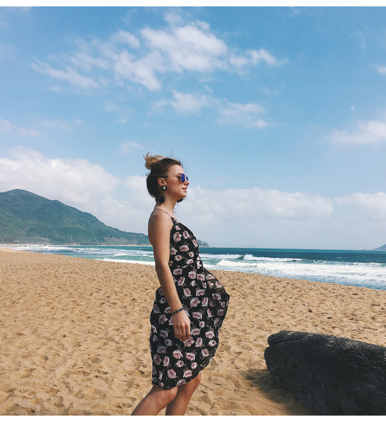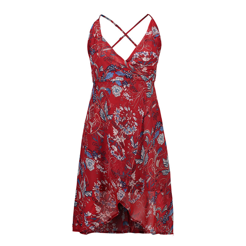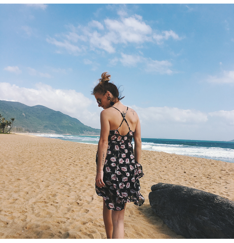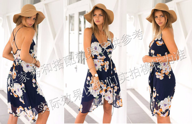 USA SIZE Sling V-neck long dress printed chiffon backless beach skirt