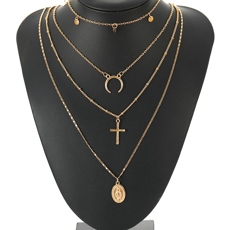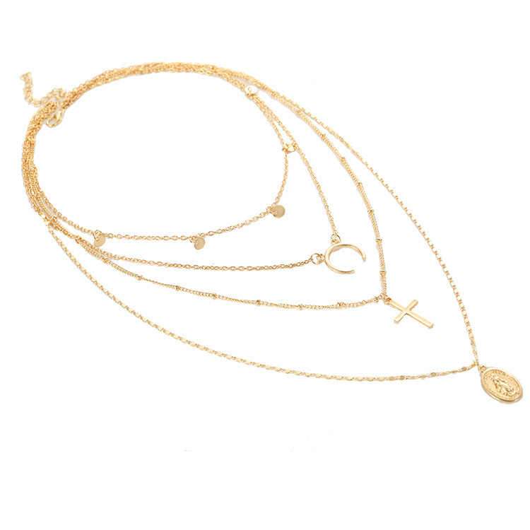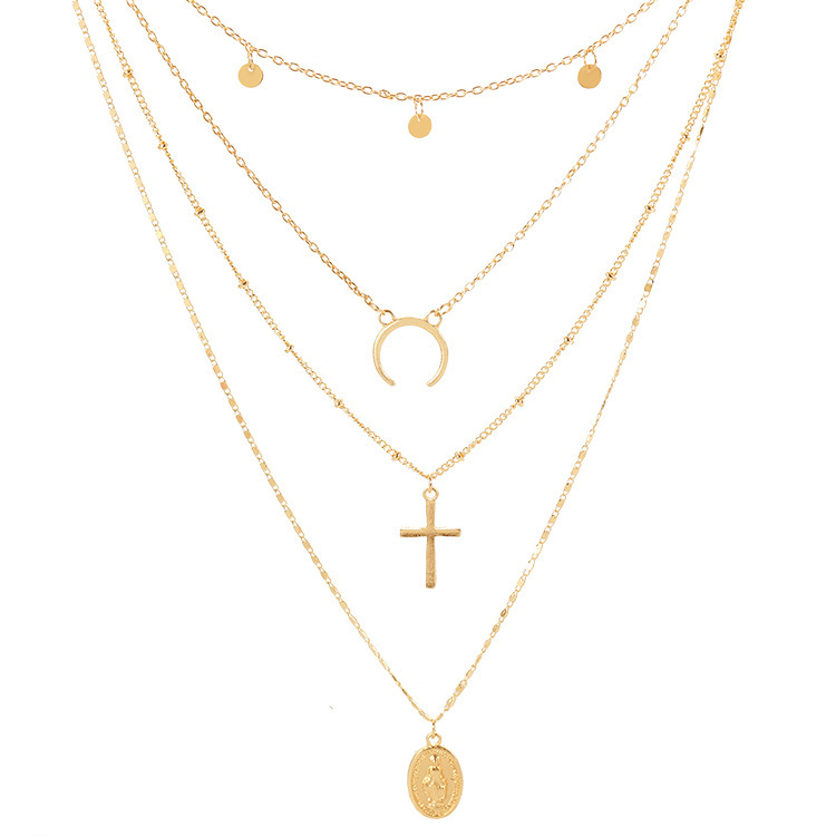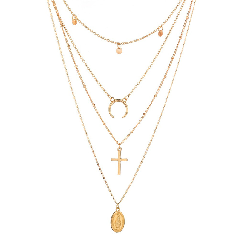Style: Europe and AmericaMaterial: AlloyProcessing technology: diamond-encrustedType: NecklaceStyle: Women'sModeling: GeometryExtension chain: 10cm or lessPendant material: alloySeries: Multilayer NecklaceColor: golden