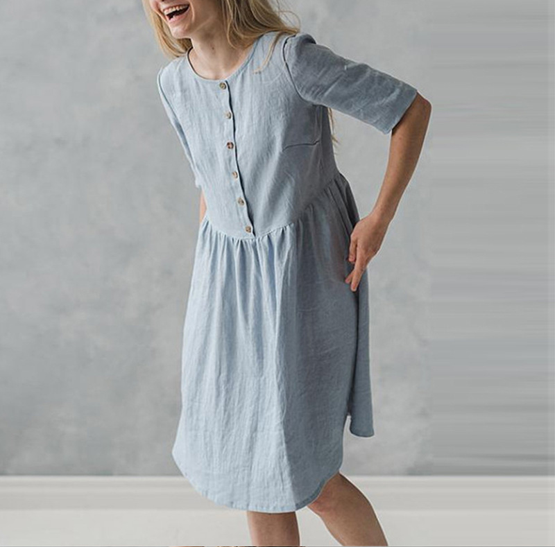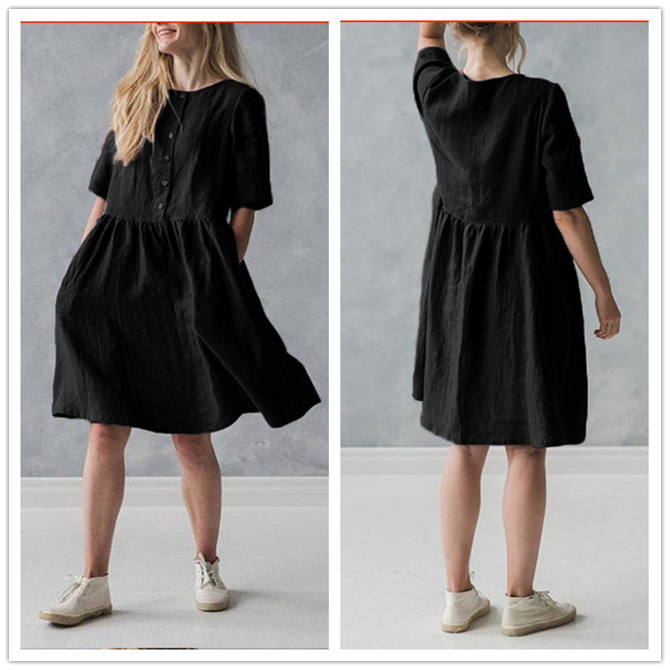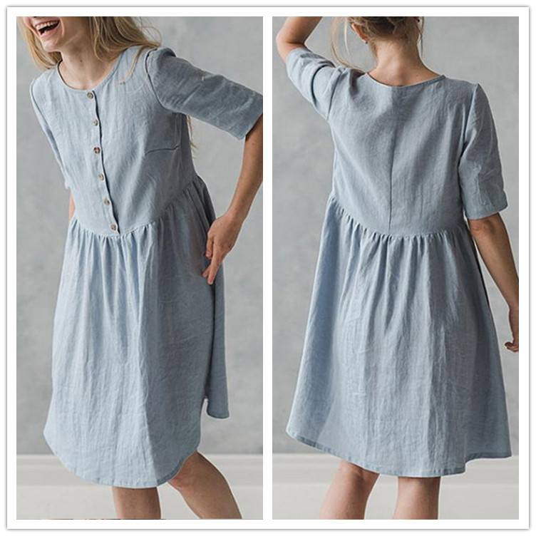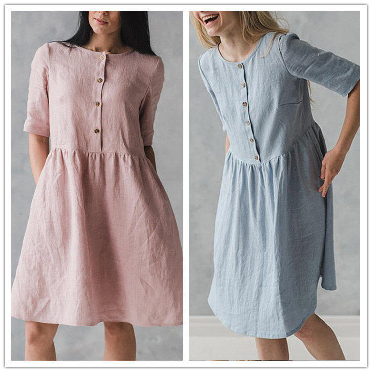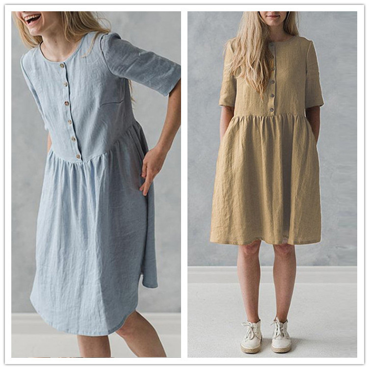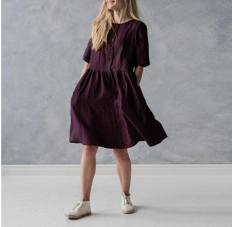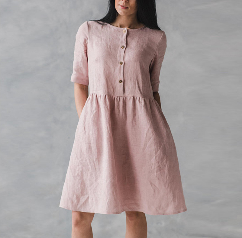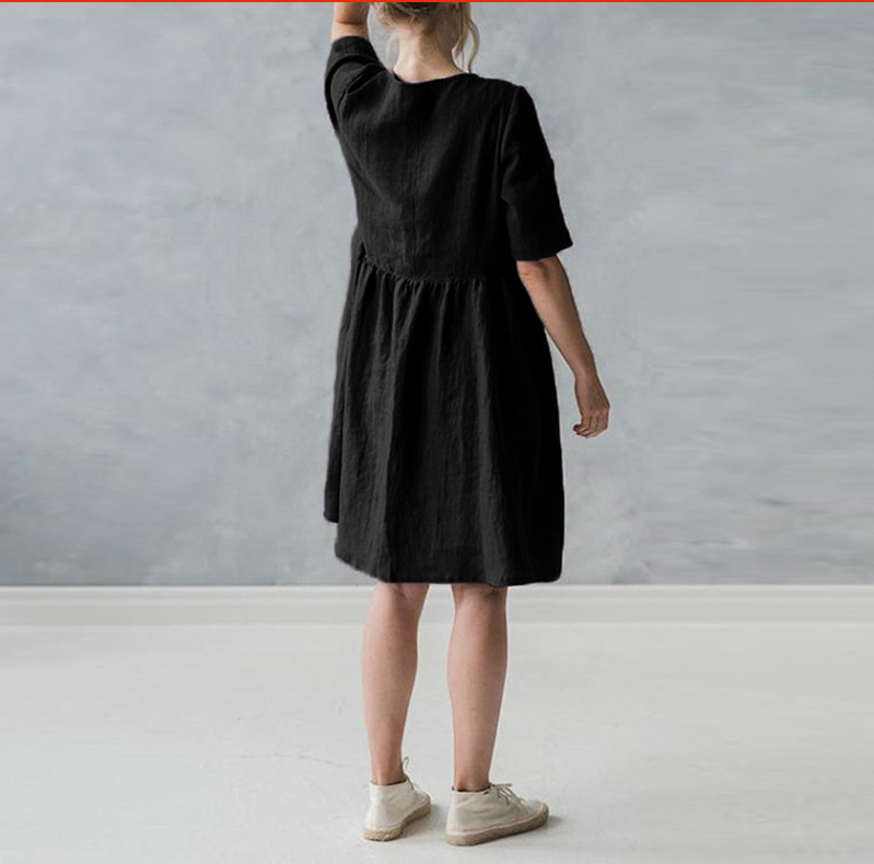 Cotton and linen art casual loose sleeve dress