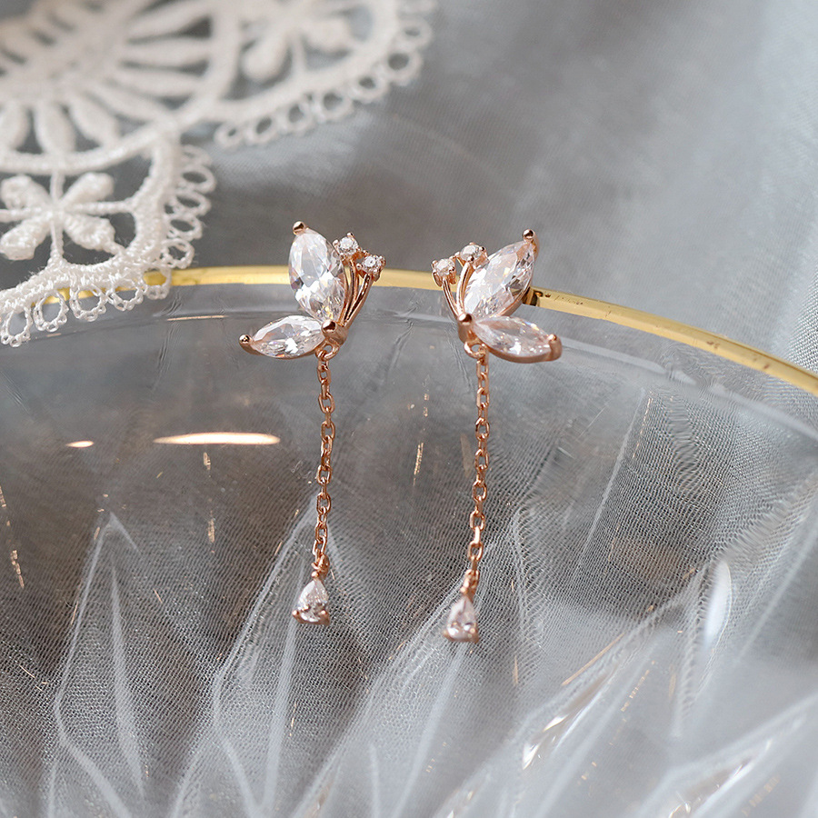 Style: Korean style/Korean styleMaterial: SilverTreatment process: electroplatingType: EarringsStyle: Women'sCrystal type: cubic zirconiaModeling: Butterfly