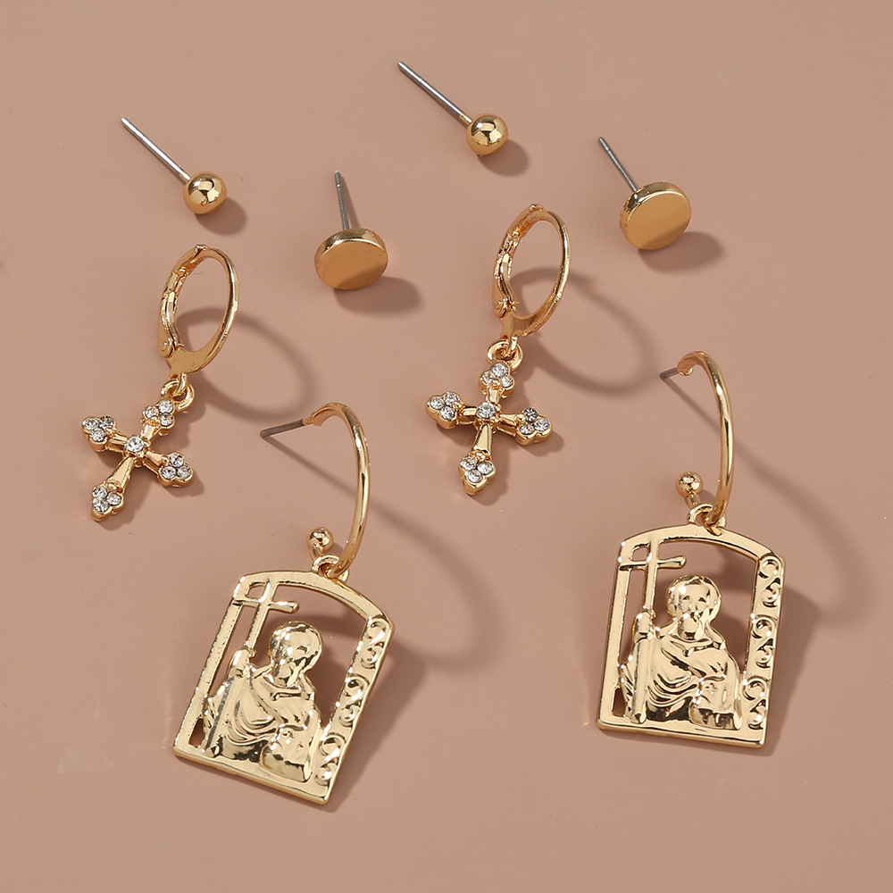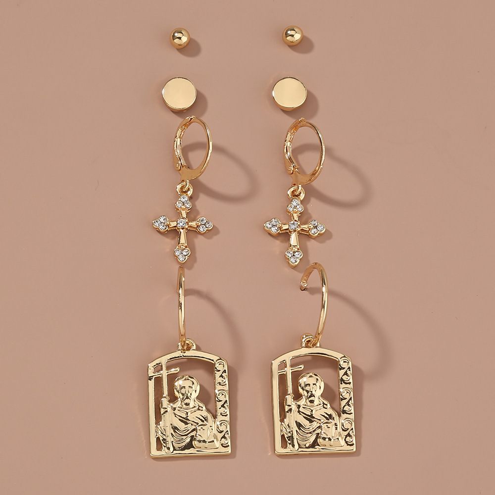 Product Information: Material: AlloyModeling: GeometryTreatment process: electroplatingColor: goldInlay material: alloy Popular elements: cross, metal, pattern, geometryPacking list:Earring set * 1