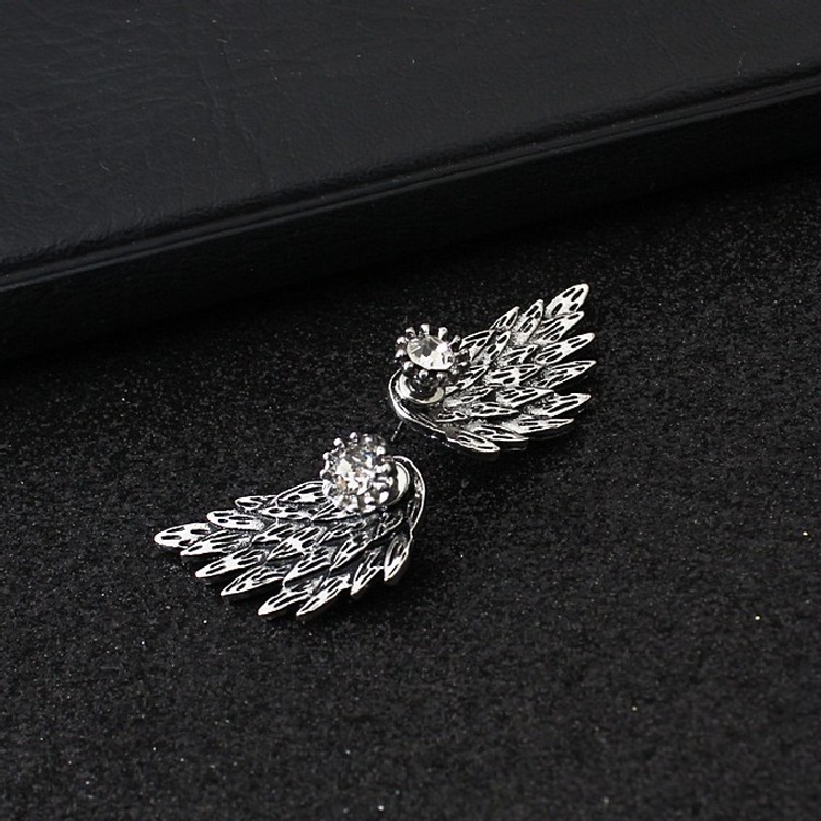 Angel Wings Stud Earrings with Diamonds