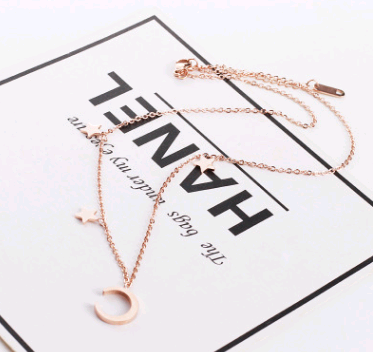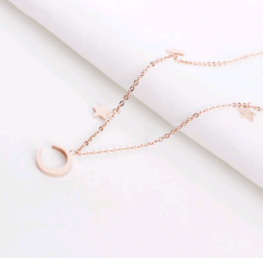 Simple titanium steel stars moon necklace female simple temperament plated 18K rose gold clavicle chain short necklace