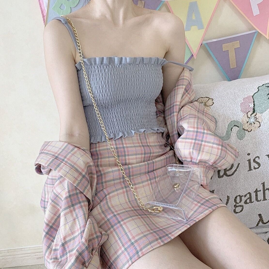 Product information:Product category: small vestStyle: sweetStyle: Sling typeEdition type: Slim typeLength: Super short (length ≤40cm)Size informationsize: one sizePacking list:Vest x1