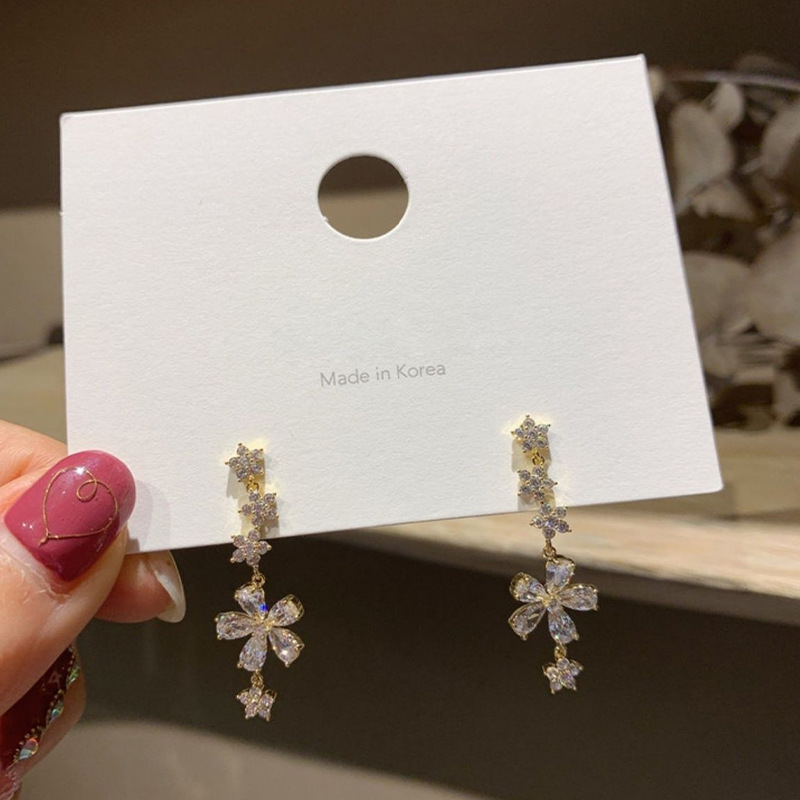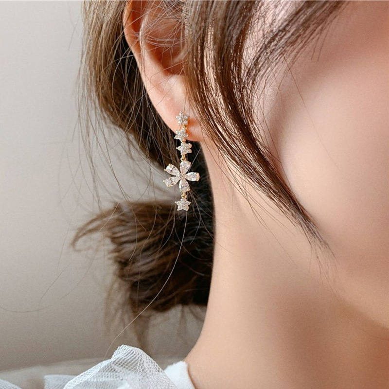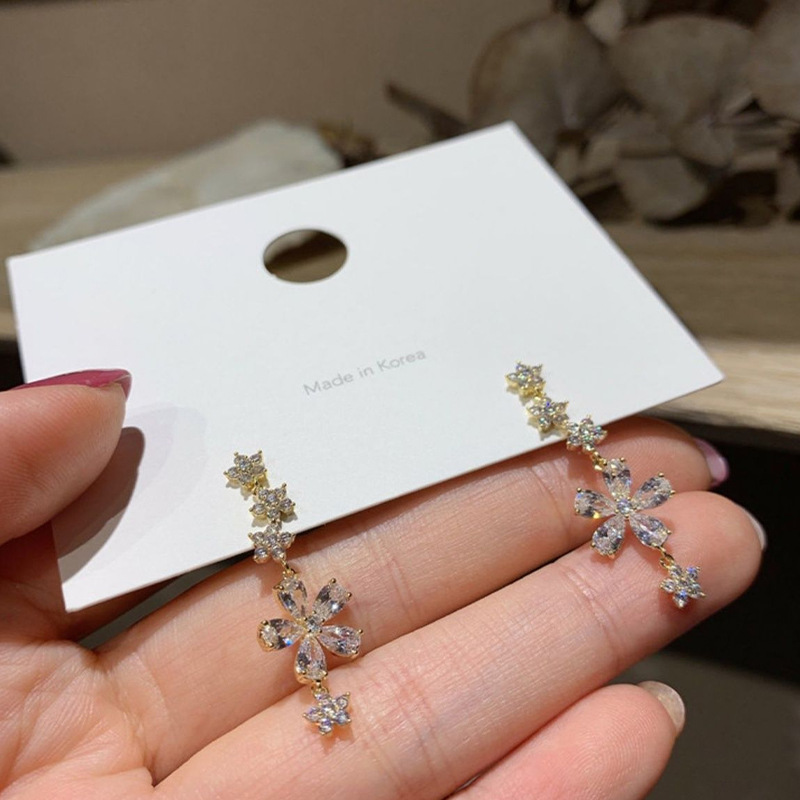 Product information:Material: AlloyModeling: FlowersProcessing technology: diamond-encrustedInlay material: alloy inlaid artificial gems/semi-precious stonesColor: Silver Post-Golden Rhinestone Flower Pendant Earrings
