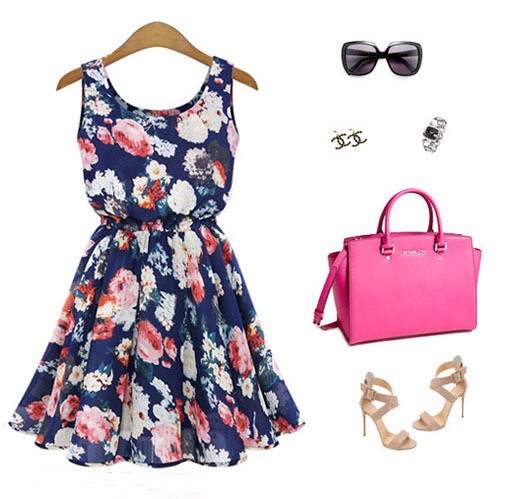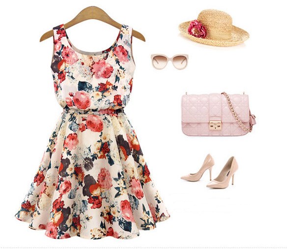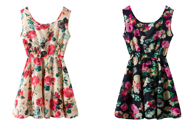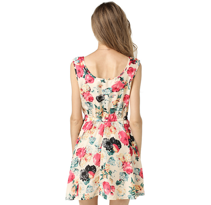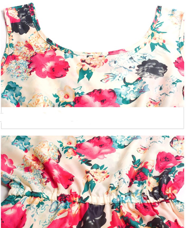 USA SIZE Summer bottom skirt Sleeveless printed chiffon dress Floral vest dress