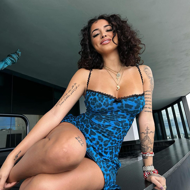 Product information:Pattern: Leopard printSkirt-type: suspender skirtColor: blue, weight: 0.19kgWaist type: high waistSize: S,M,LSkirt length: short skirtStyle: Sling styleFabric name: PolyesterSleeve type: sleeveless