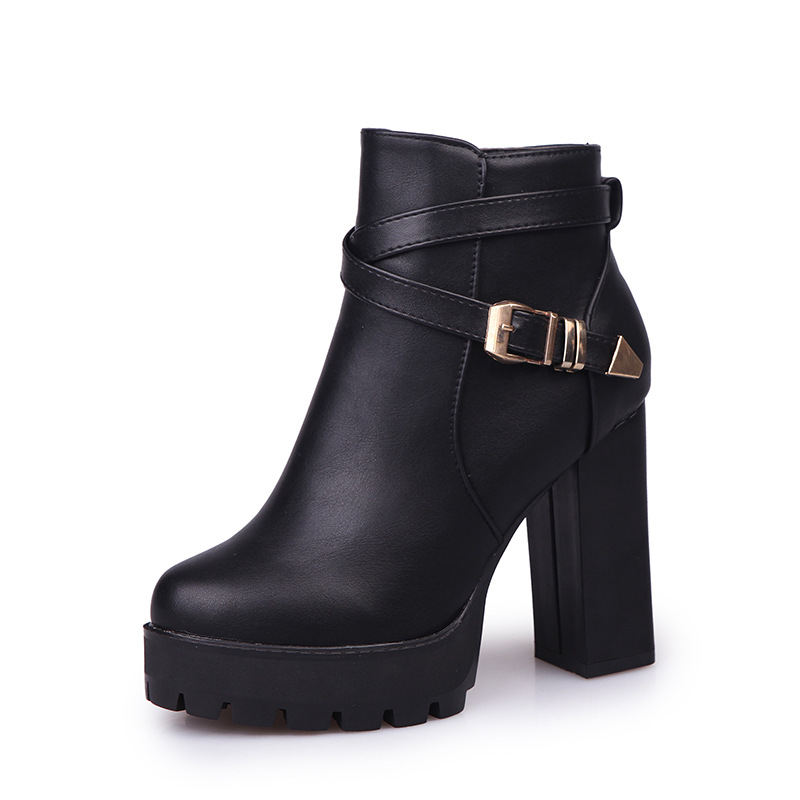 Product category: Martin bootsUpper Material: Artificial PUSole Material: RubberApplicable gender: femaleToe shape: round toeHeel shape: thick heelWearing style: front zipperHeel height: super high heel (above 8CM)