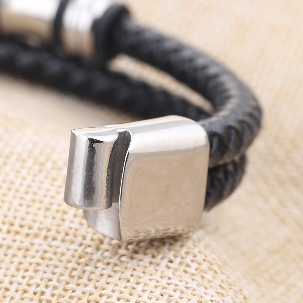 Titanium Steel Hand-Woven Leather Men'S Bracelet
