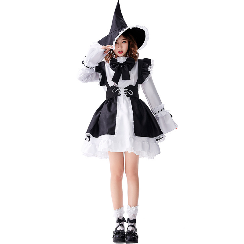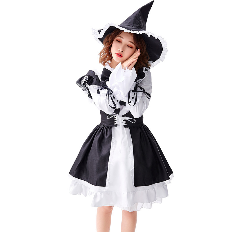 Color: Red, black, red lace witch hat, black lace witch hat,A60 white lace stockings,A60 black lace stockings,A64 cotton skirt