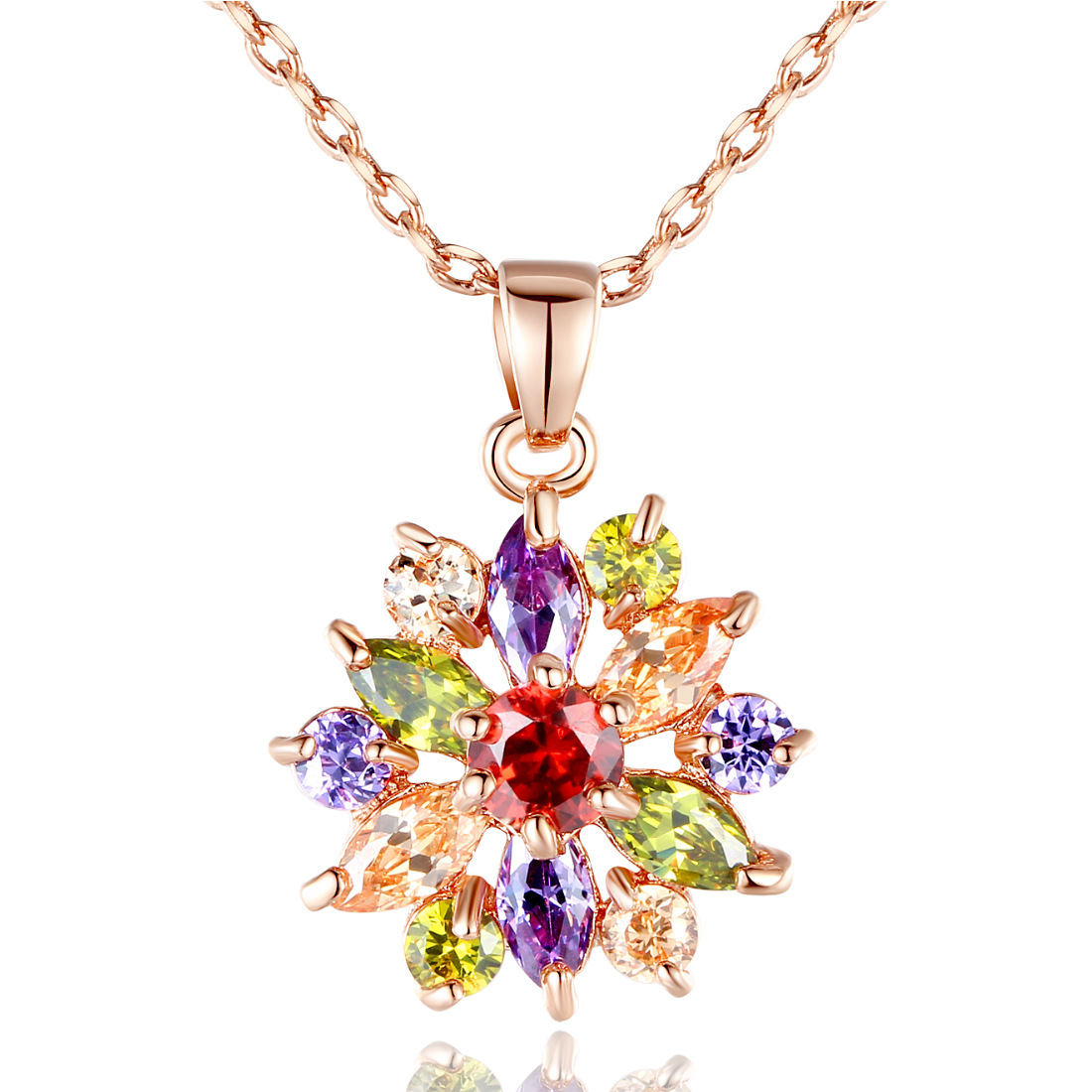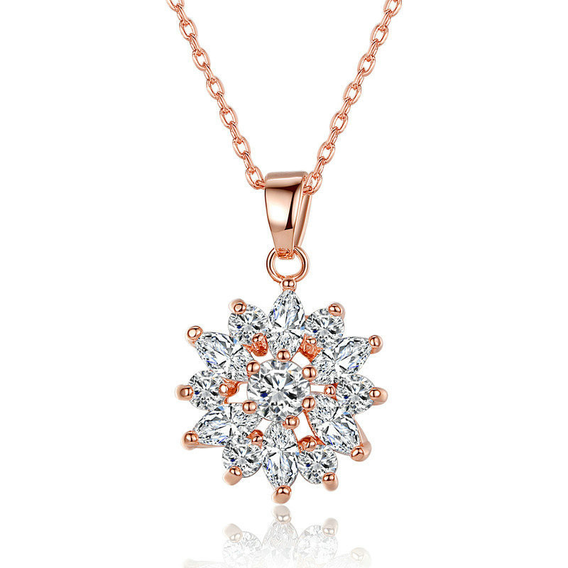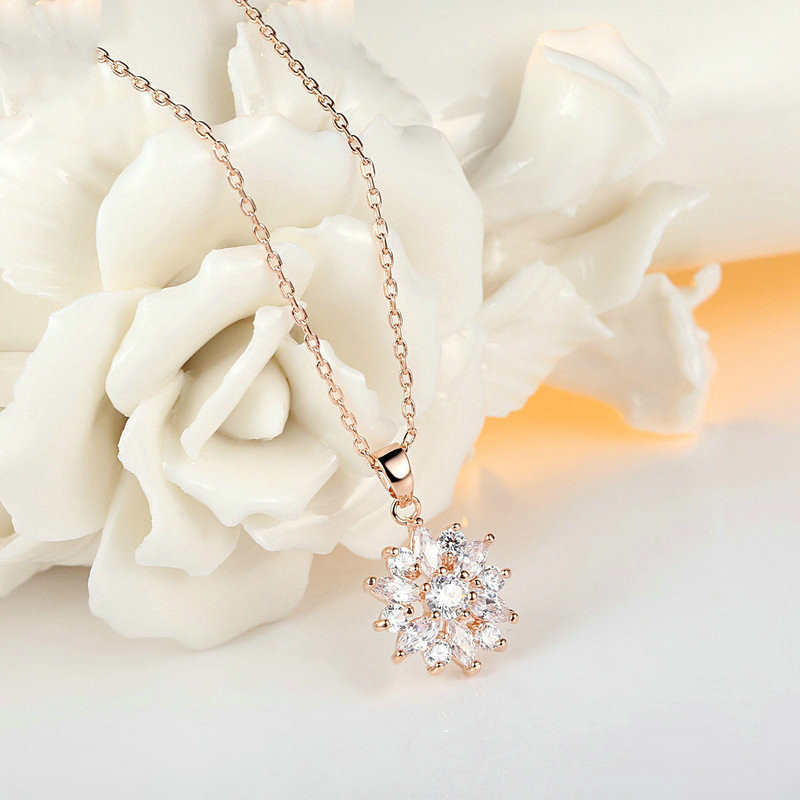 Product information Material: CopperTreatment process: inlaid with gemsModeling; flowersColor: rose gold, white gold, rose gold fancy diamonds Package: Copper necklace*1