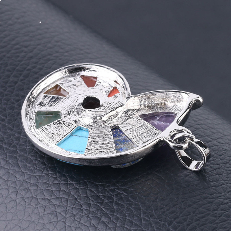 Style: National styleMaterial: natural stoneTreatment process: electroplatingType: NecklaceStyle: Women'sModeling: Seven ChakrasPackaging: Individually packedSize: about 4.6 x 2.9 x 0.6cmChain length: about 45cm