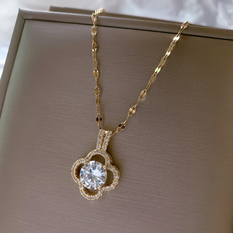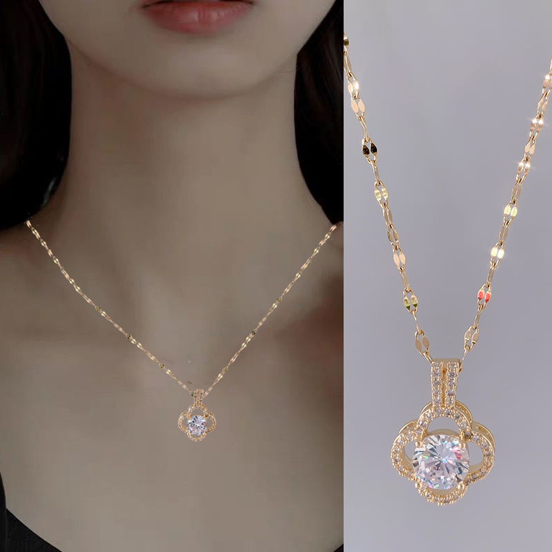 Lucky Four-leaf Necklace Female Clavicle Chain Gold Imitation Allergy Does Not Fade