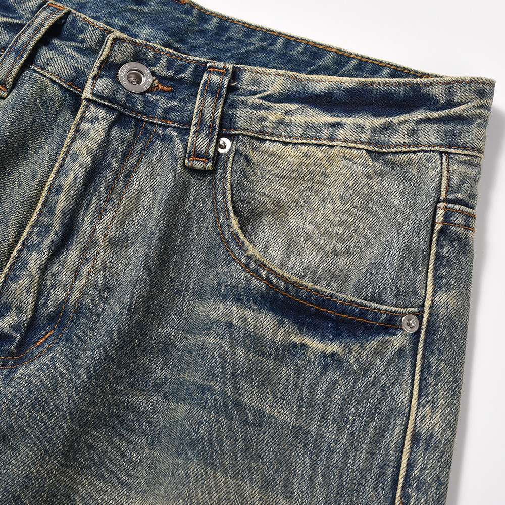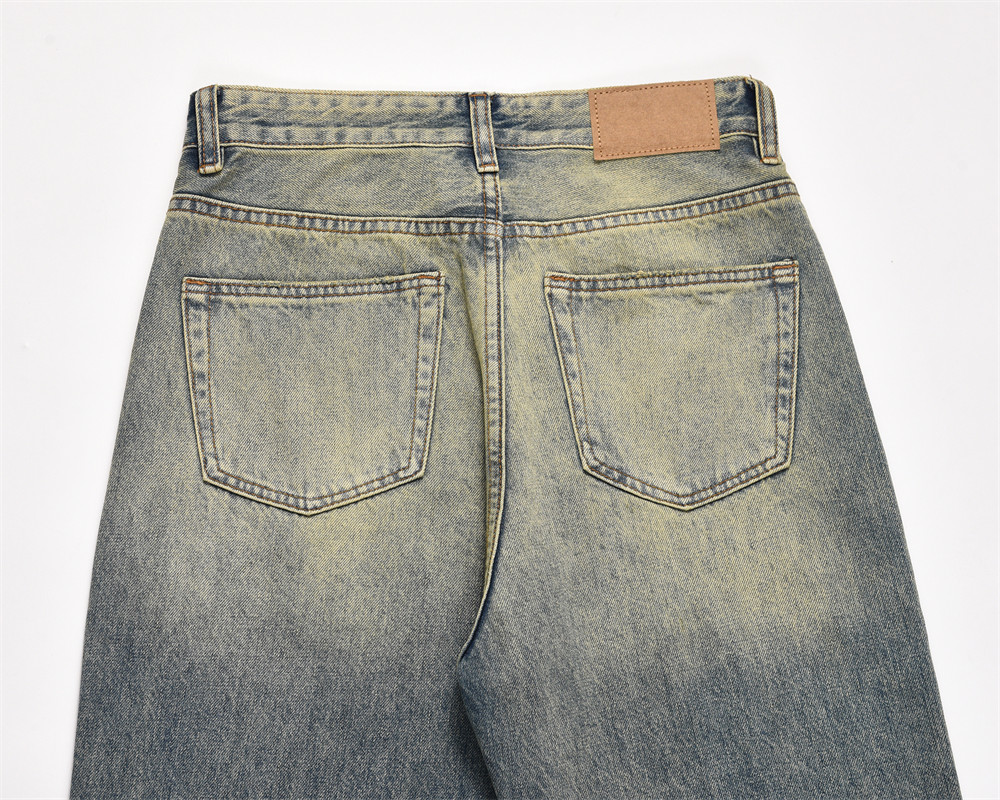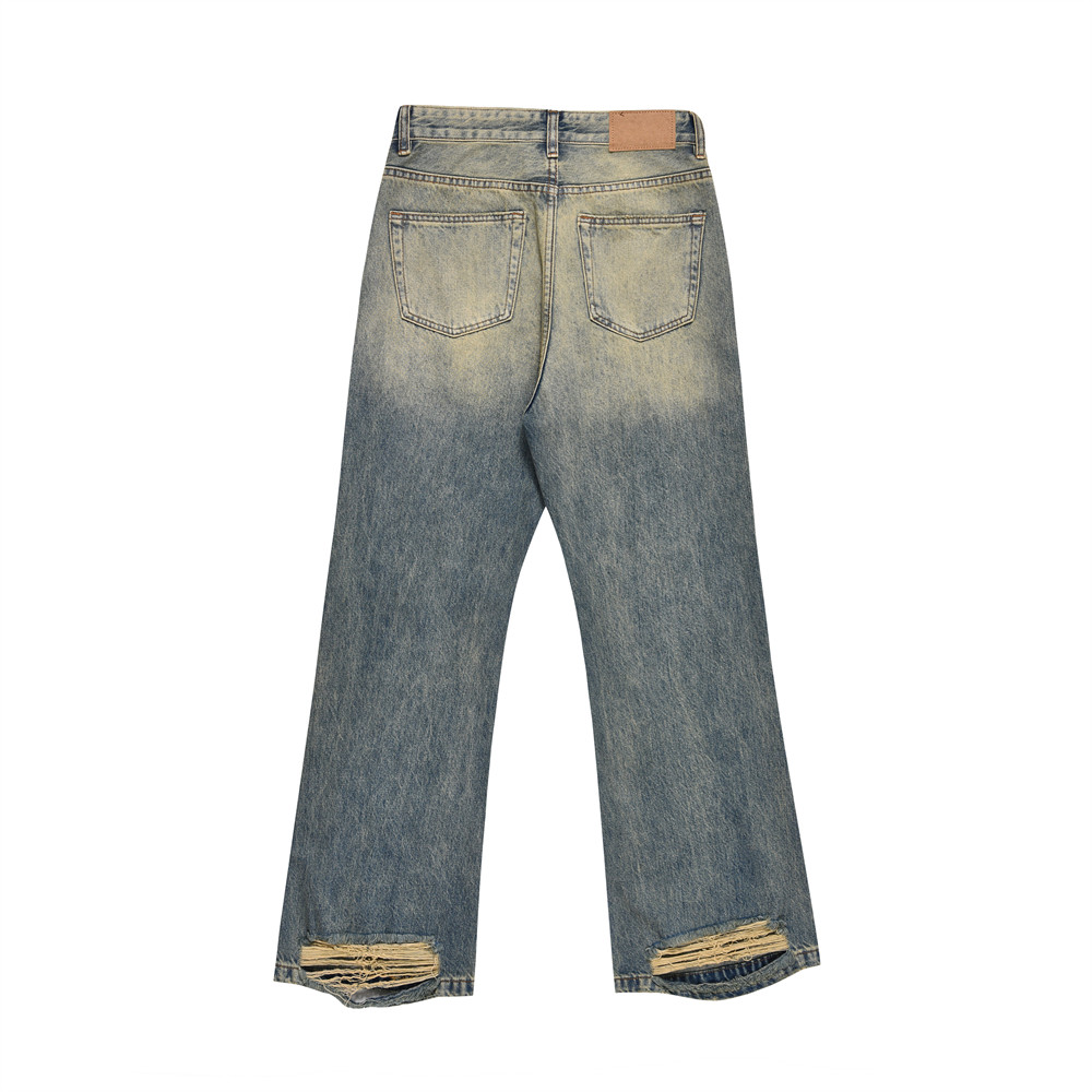 Washed Yellow Faded Jeans For Men