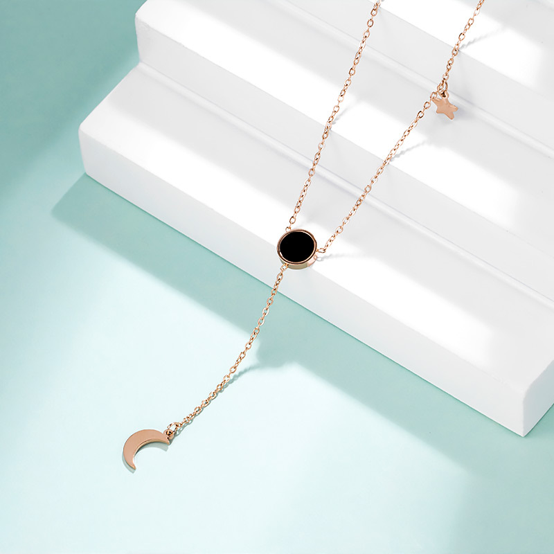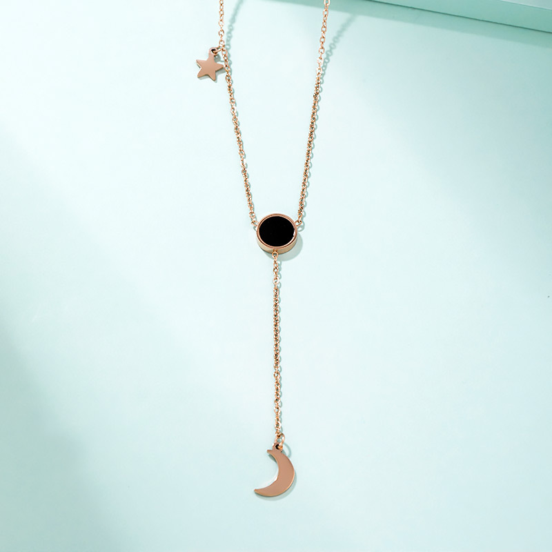 Type: NecklaceStyle: Women's Material: titanium steel Treatment process: AcrylicChain style: clavicle chainChain length: about 40cm+6.1cm extension chainSize: 6cm in heightMetal material: alloy gold platedElectroplating color: rose gold