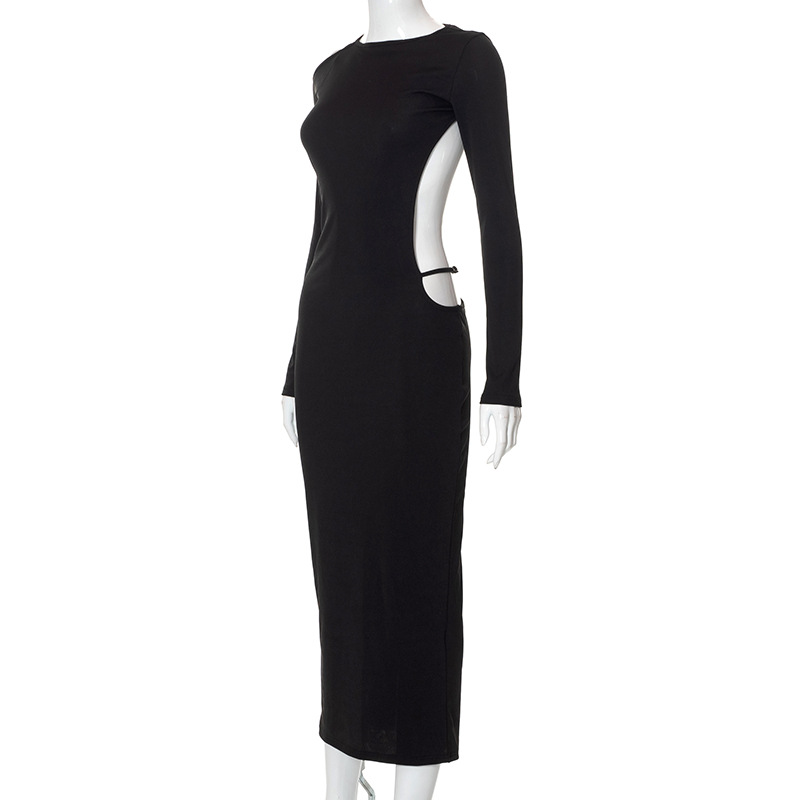 2023 New Solid Color Casual Backless Long Sleeve Strap Slim Long Dress