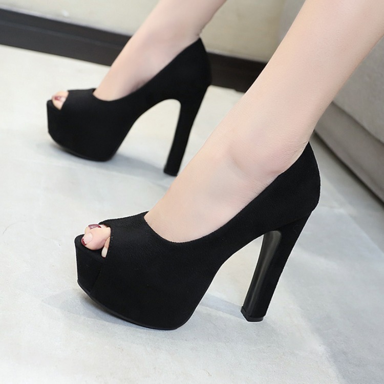 Product information:Heel height: flat heelpattern: plainToe shape: fish mouthStyle: SexySole Material: RubberColour: BlackSize: 34,35,36,37,38,39Packaging Information:High heels x1