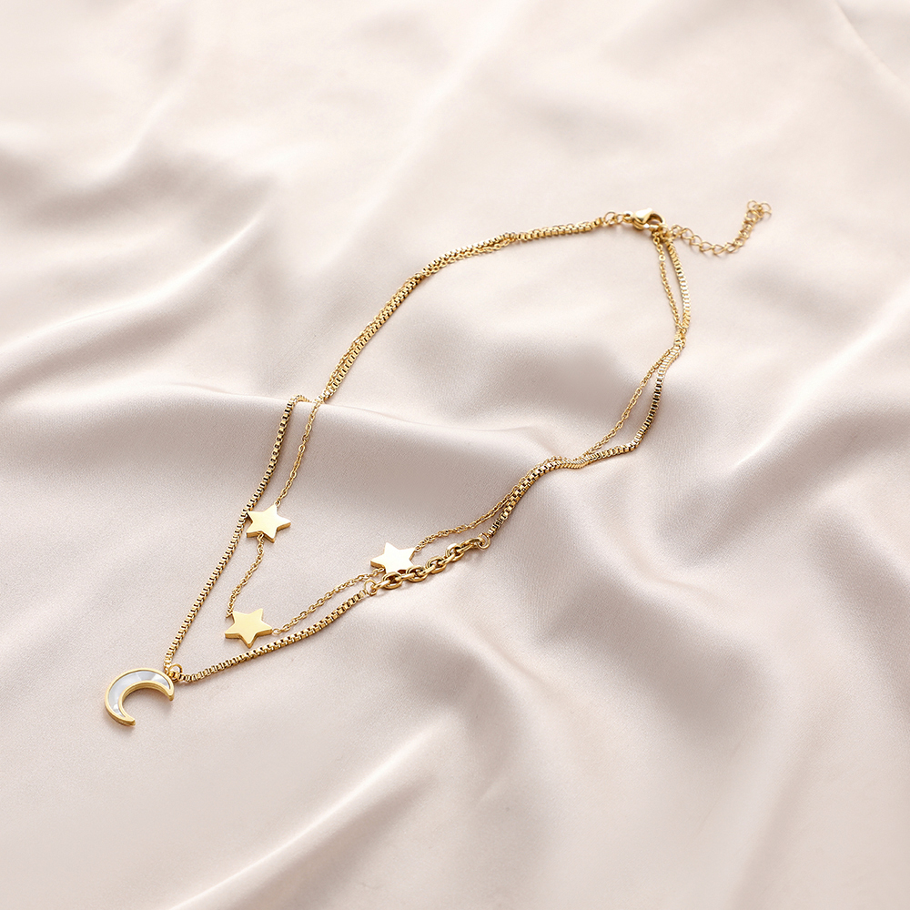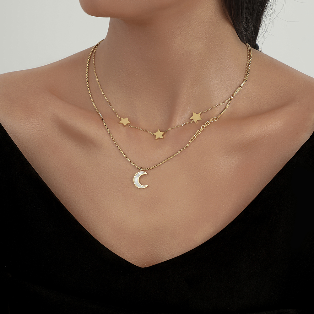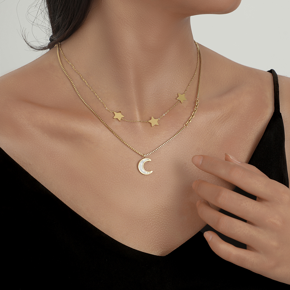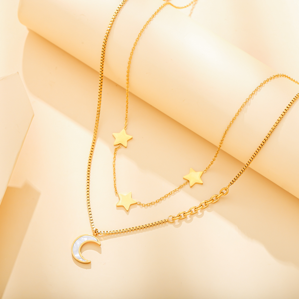 European And American Stainless Steel Moon Star Ladies Pendant Necklace