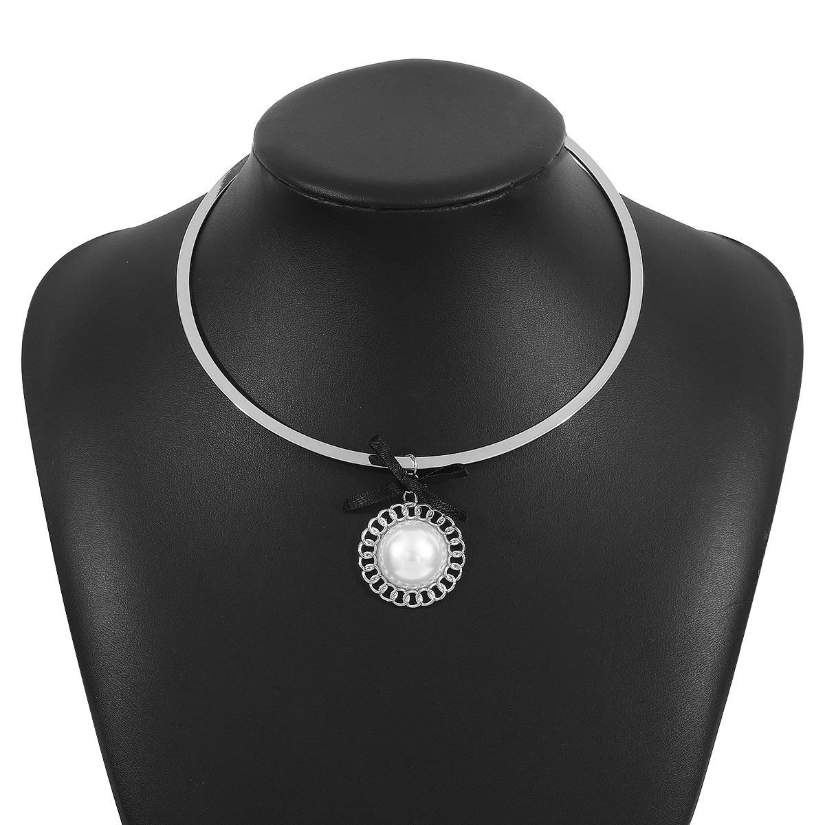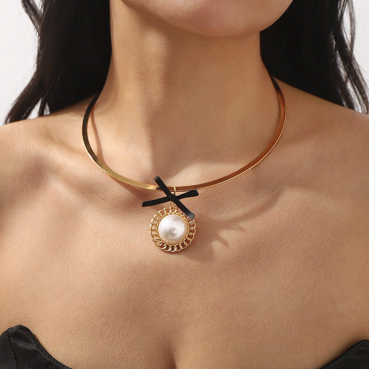 Product information:Type: necklace Color: gold, white k Applicable population: Female Pendant material: Pearl Packing size: 27*15 * 1cm Material: Hoop alloy imitation pearl ribbon Shape: Bow, geometry