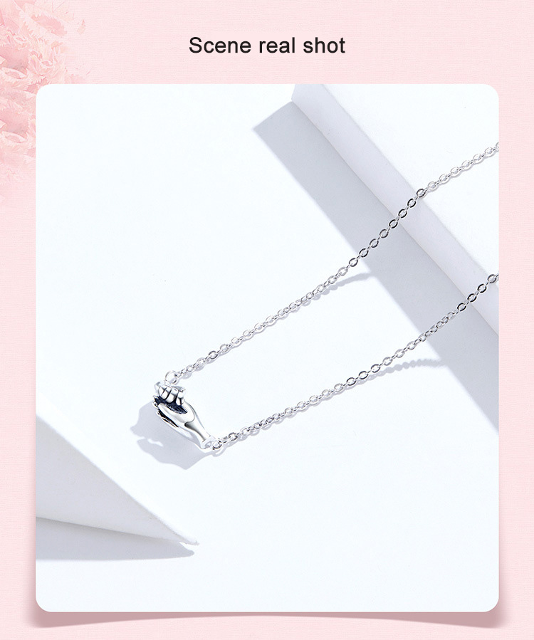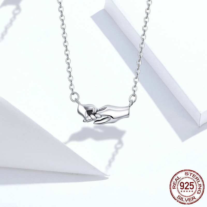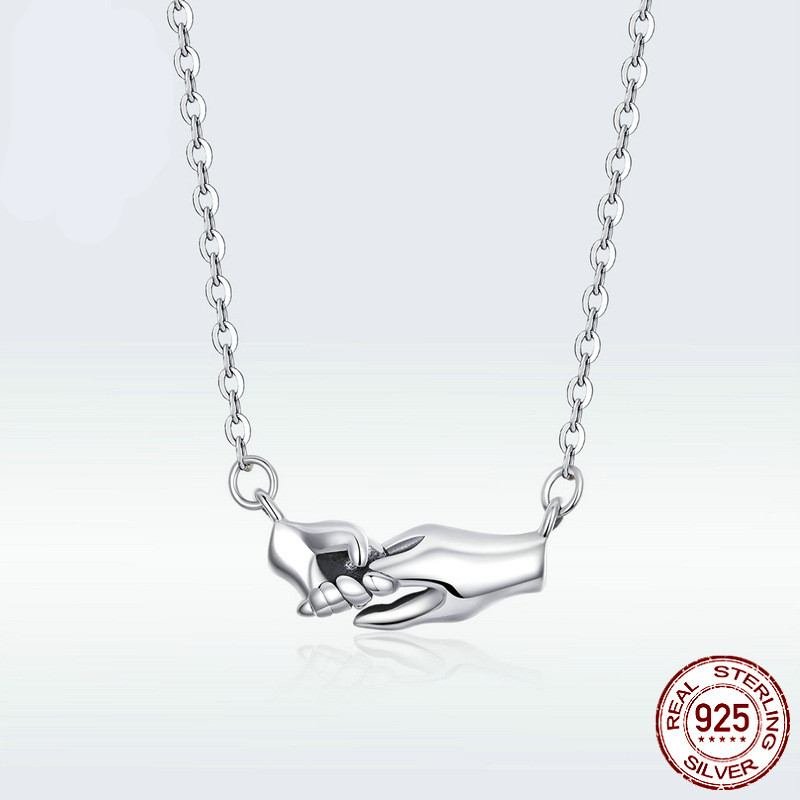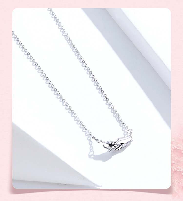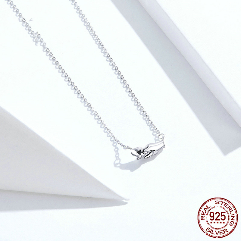 Hands guarding mother's necklace gift
