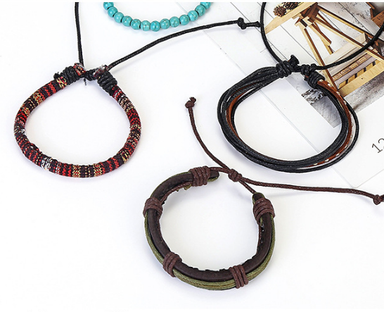 European and American simple vintage suit bracelet knitted cowhide bracelet men's leather bracelet