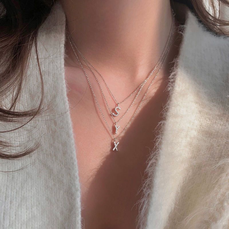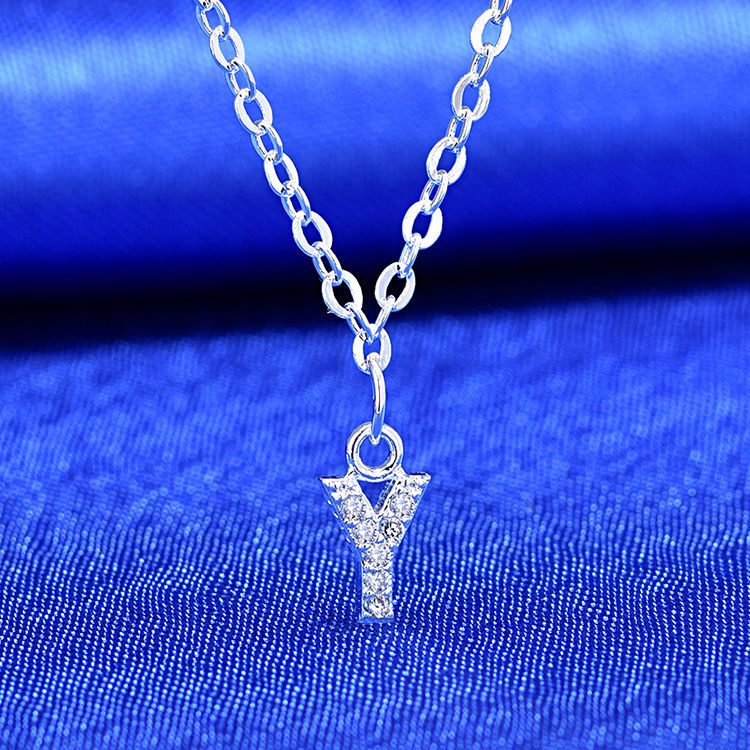 925 Rhinestone 26 Letter Necklace Minimalist Design