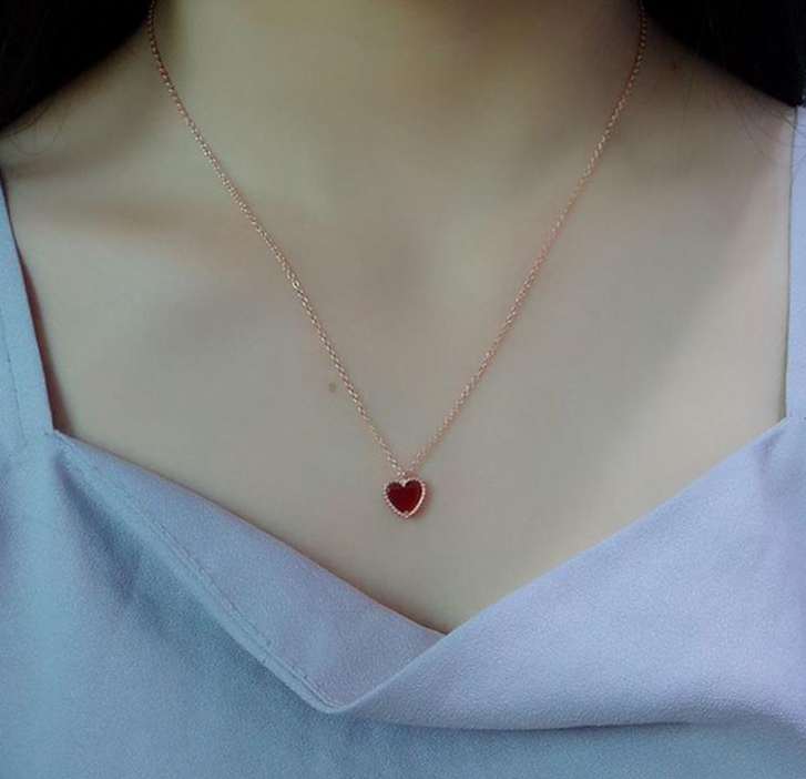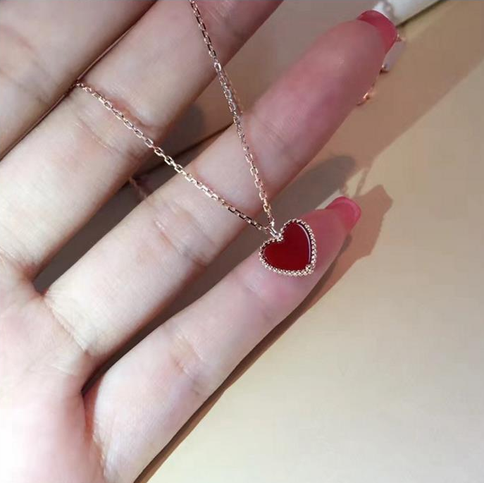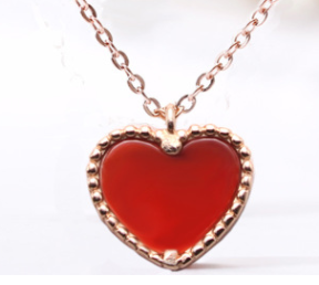 925 Sterling Silver Gold Plated Red Agate Heart-shaped Pendant