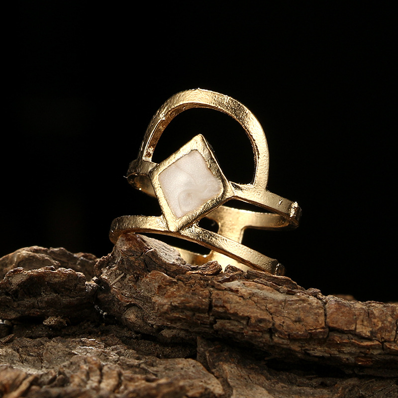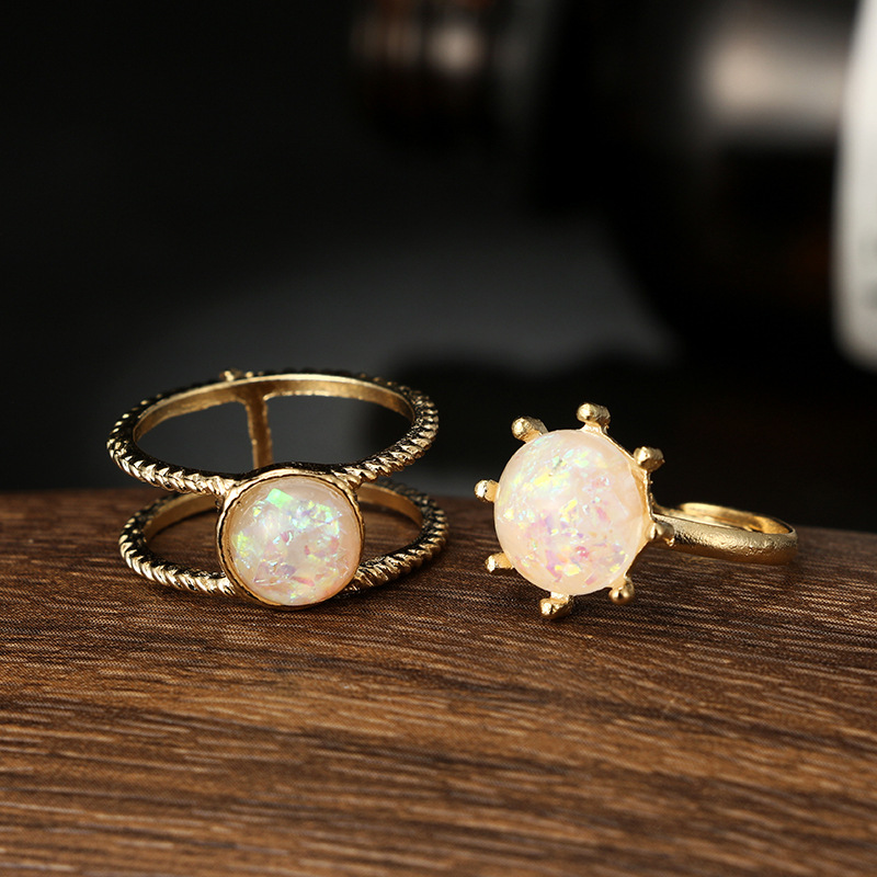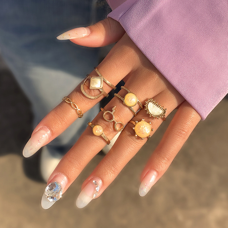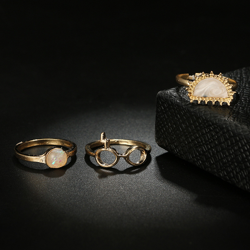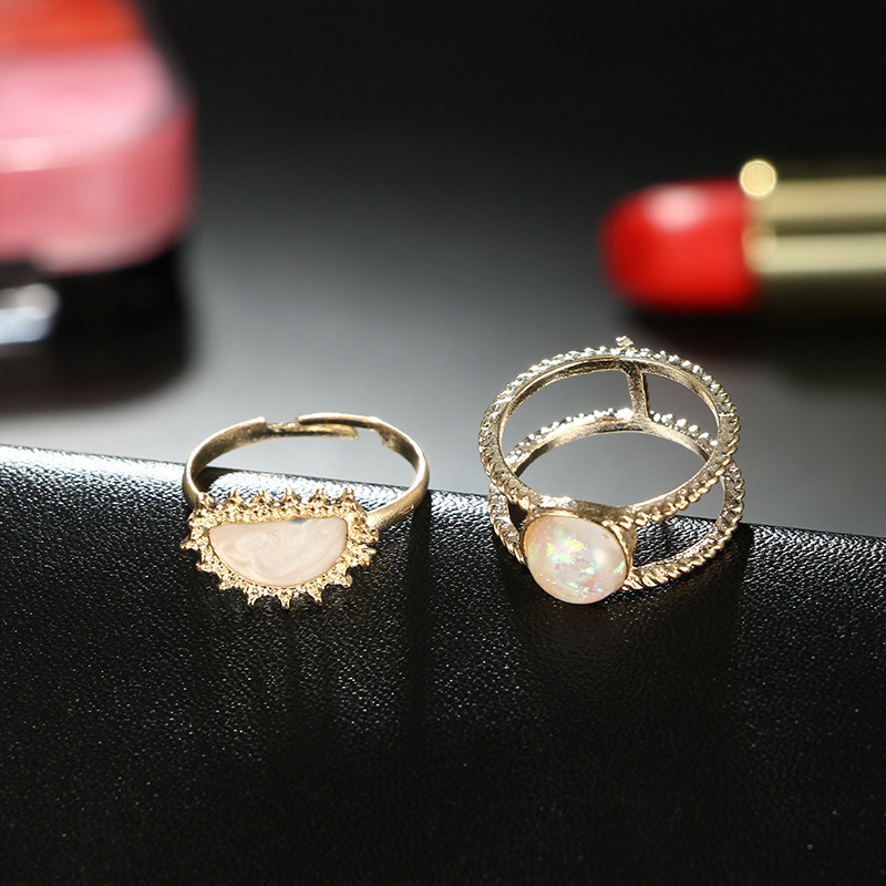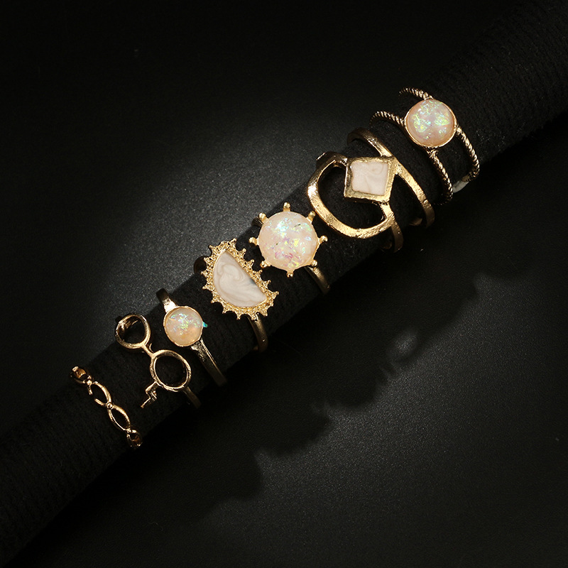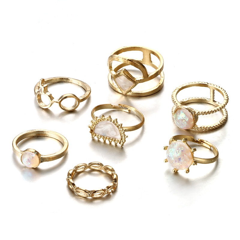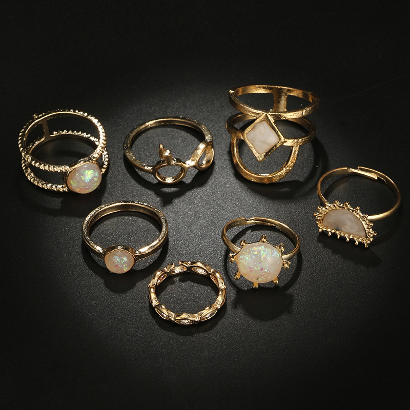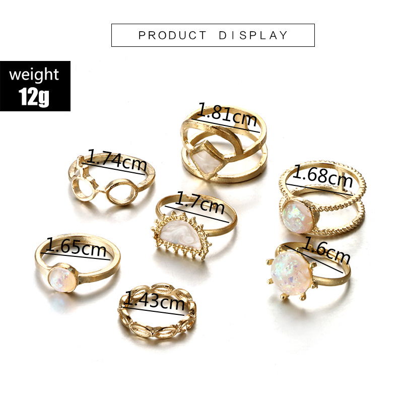 Fashion OrnamentGemstone Inlaid Ring Suit Geometric Hollow Alloy Seven-piece Ring