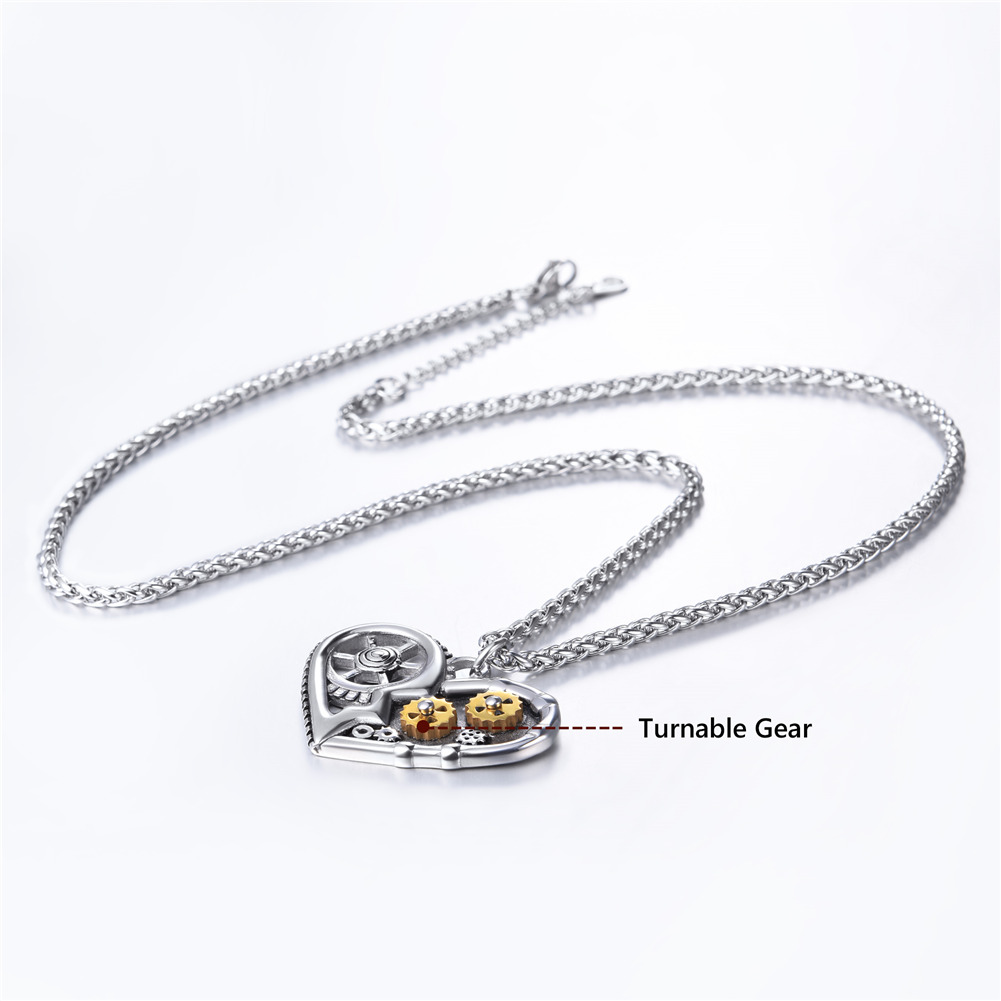 Quality Black Stainless Steel Mechanical Gear Heart Pendant Necklaces