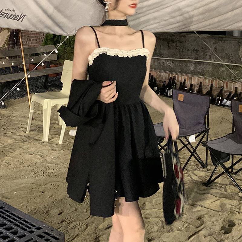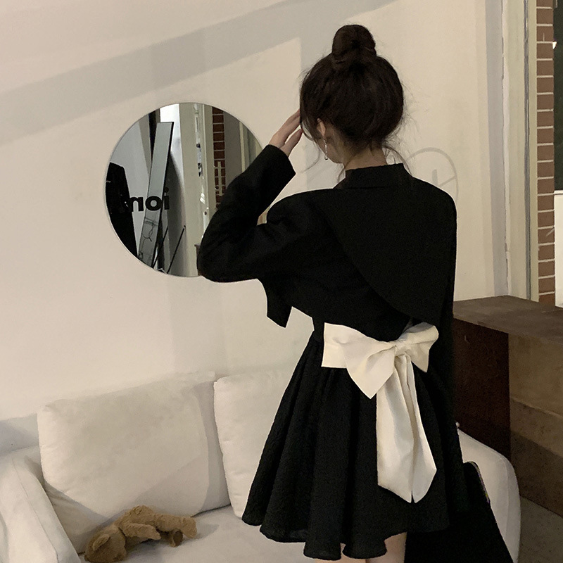 Women's Waist And Slim Mid-length Bow Black Skirt
