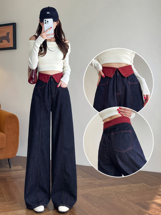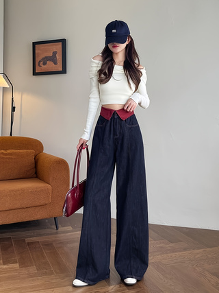 Autumn loose straight-leg pants with high waist and wide legs