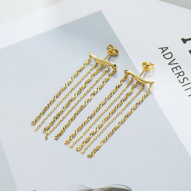 Women's Sterling Silver Gold Plated Long Dangling Tassel Earrings