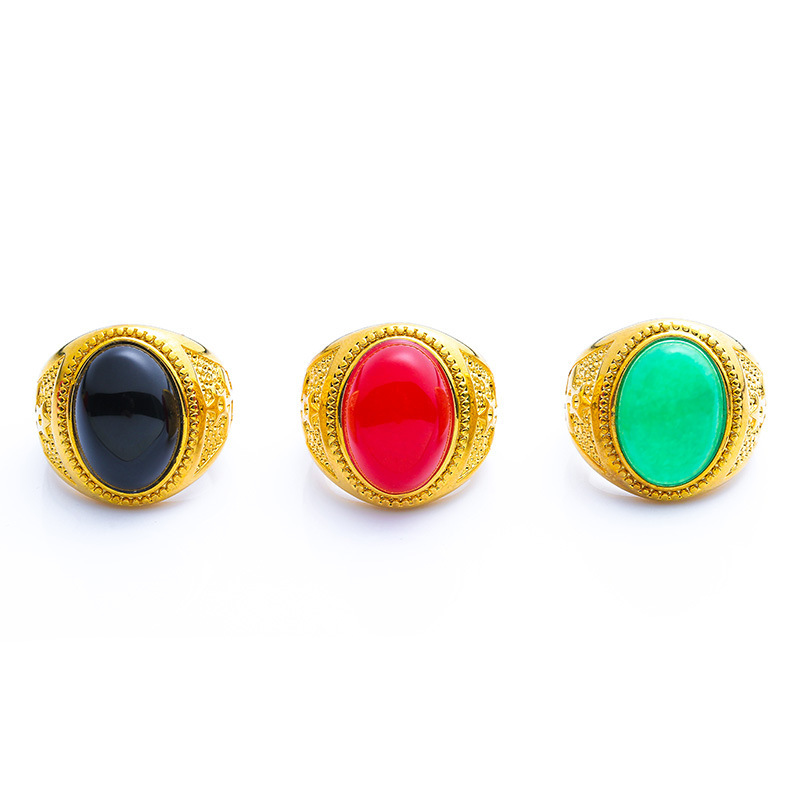 Product Details:Type: RingMaterial: BrassShape: U shapeStyle: Men'sColor: round black ring, round red ring, round green ringSize: Opening adjustablePackage Contents:Copper Ring X1