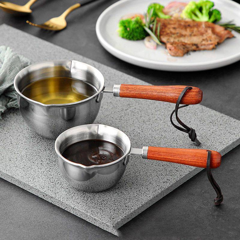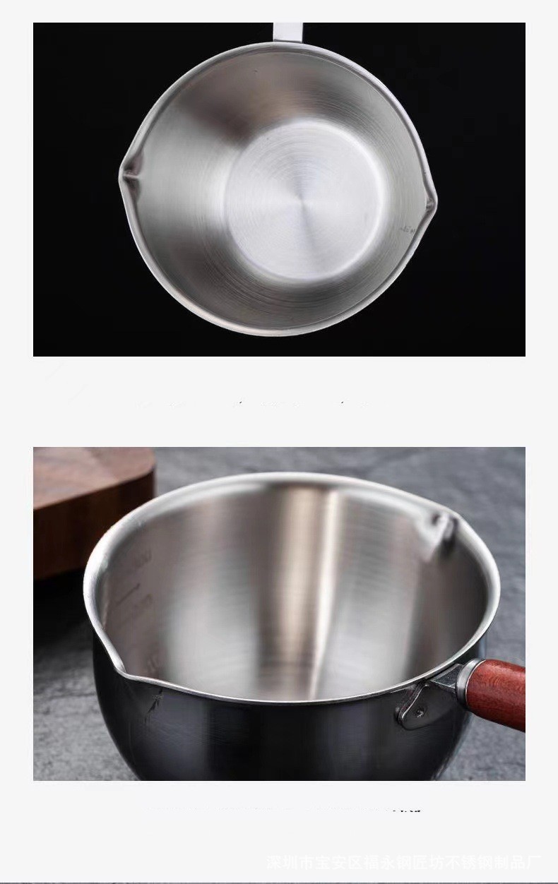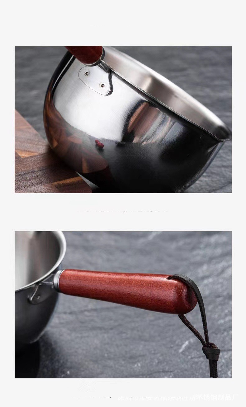 Specifications: 304 small wooden handle -150ML (thick version 1.0),304 large wooden handle -300ML (thick version 1.0),304 small wooden handle -150ML (thin version 0.8),304 large wooden handle -300ML (thin version 0.8).