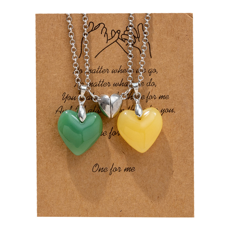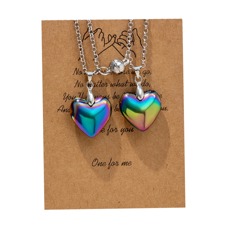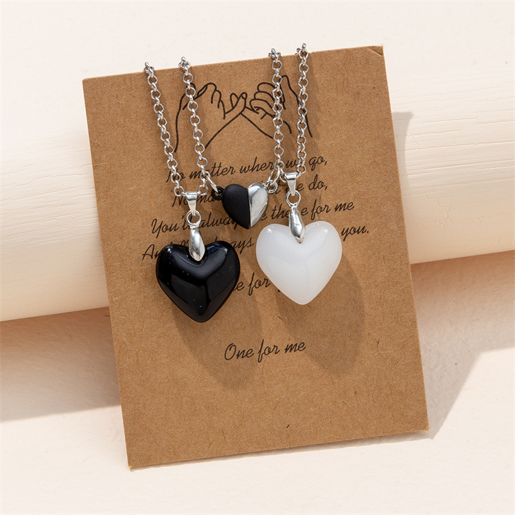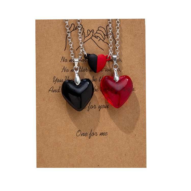 Product information:Color: Black and White love pendant, black and red love pendant, white and blue love pendant, yellow and green love pendant, red and blue heart pendant, colorful love pendant Chain style: water wave chain Material: Gem
