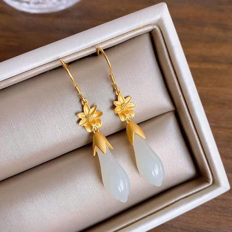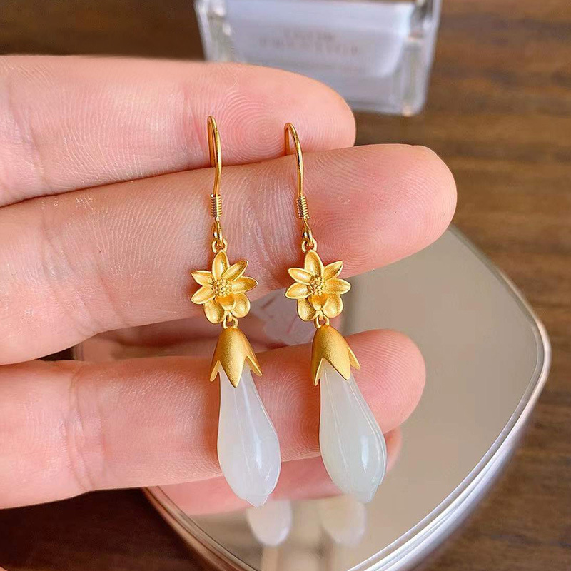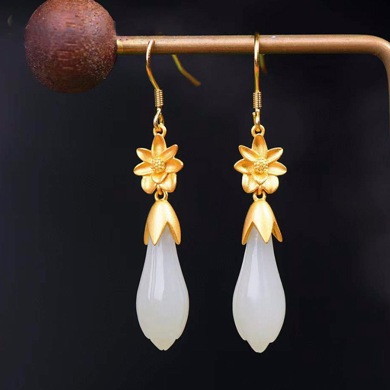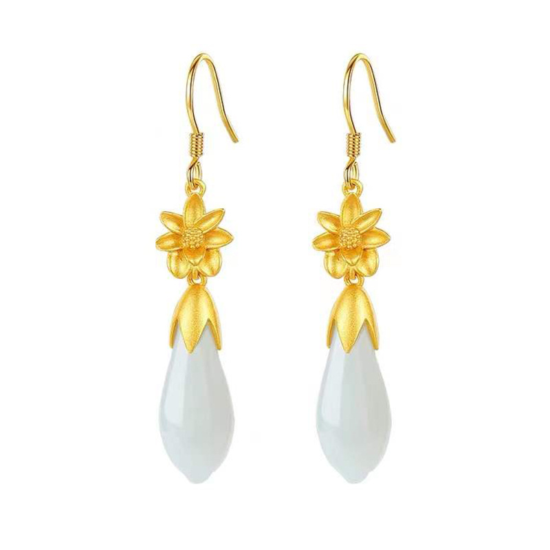 Product information:Treatment Process: Electroplating Color: Magnolia earrings Applicable people: Unisex Material: Copper Shape: Geometry Popular elements: Totem, auspicious pattern Style: Chinese style